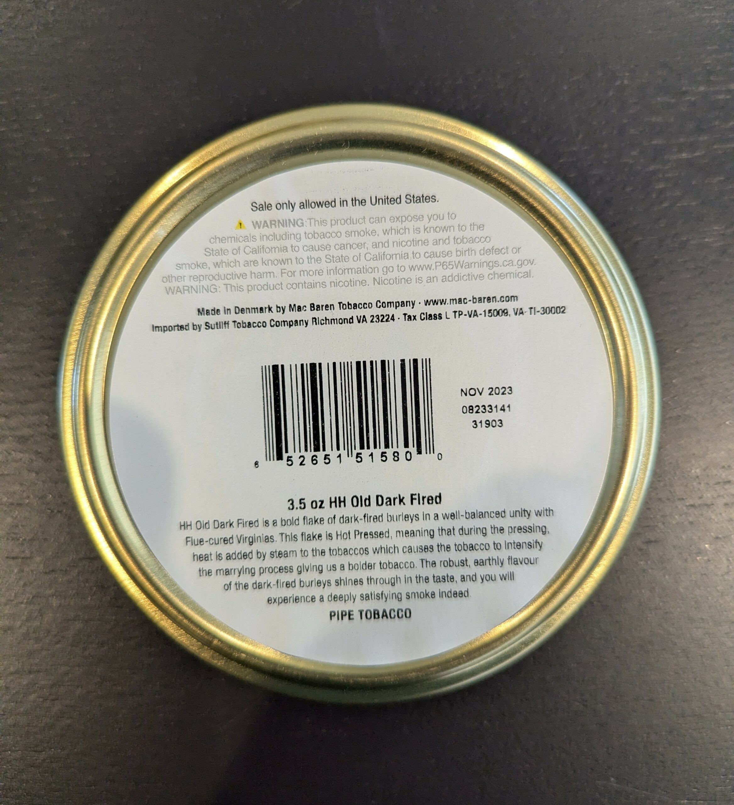 1 sealed 3.5 oz tin of 2023 Mac Baren HH Old Dark Fired