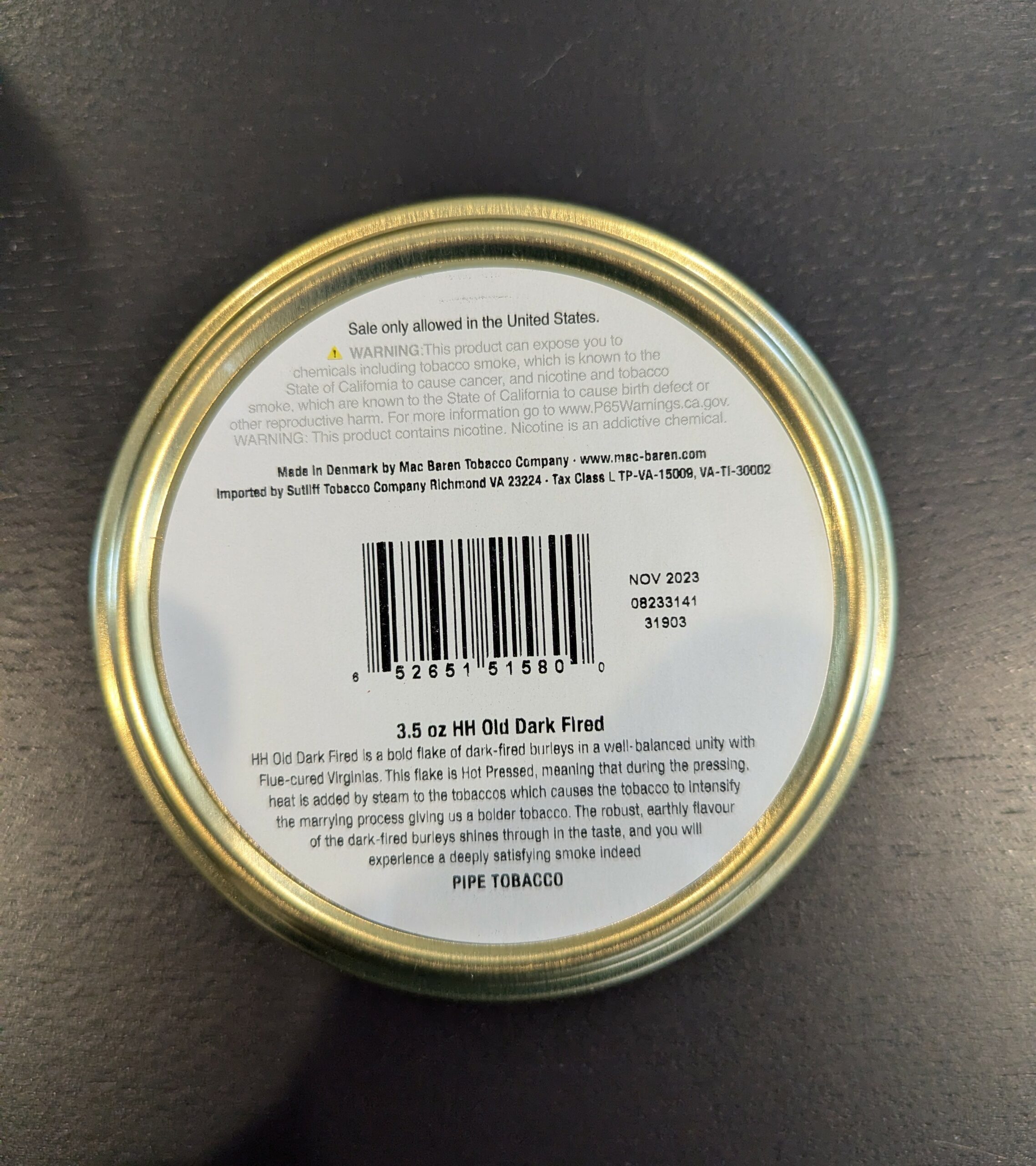 1 sealed 3.5 oz tin of 2023 Mac Baren HH Old Dark Fired