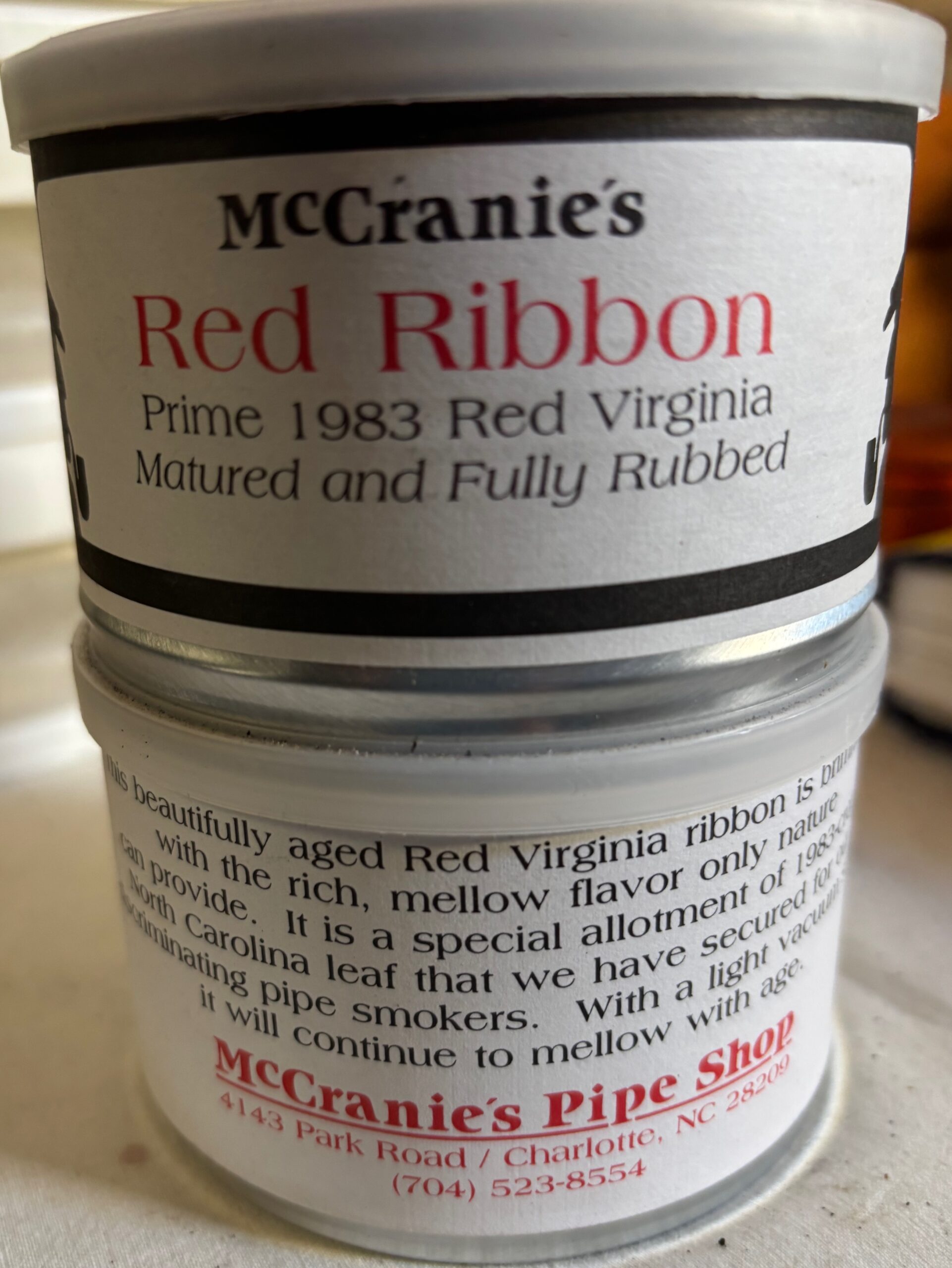 Two sealed 50 gram tins of McCranie's Red Ribbon, (made by McClelland's). The tins have been in dry, cool, and dark storage.