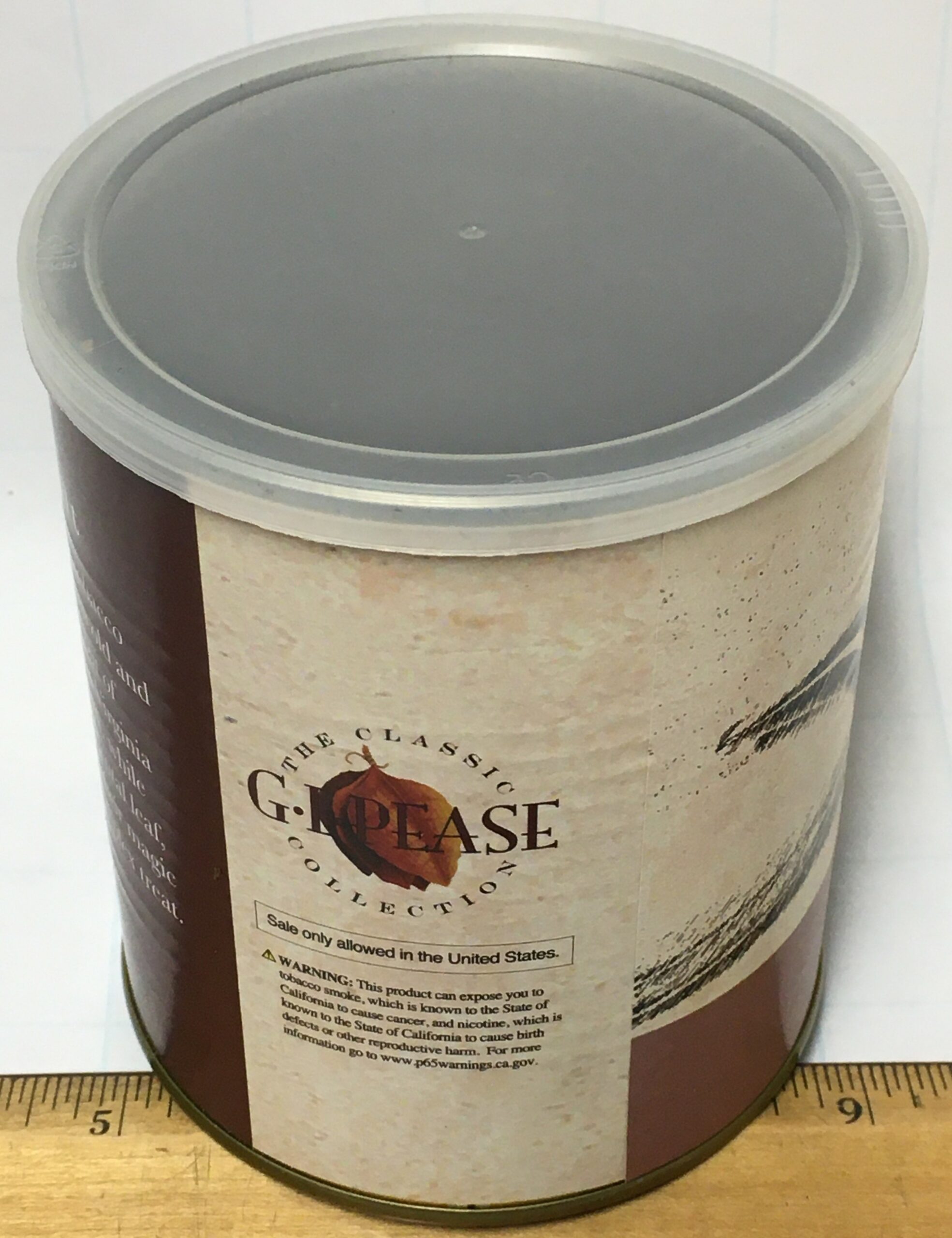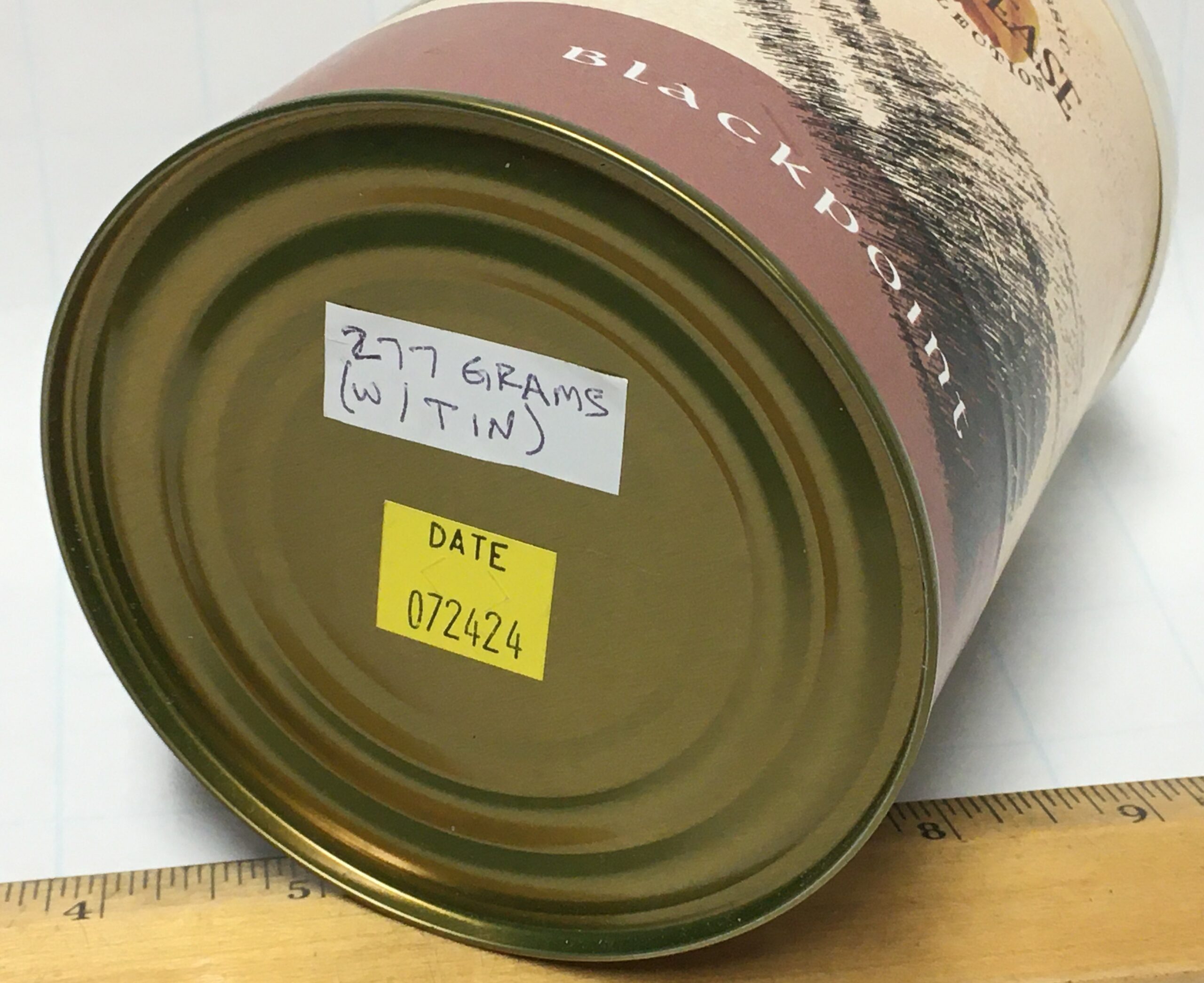 G.L. PEASE BLACKPOINT (2024) in 8oz OPENED tin. Remaining contents weigh 277 grams, INCLUDING the tin and lid.