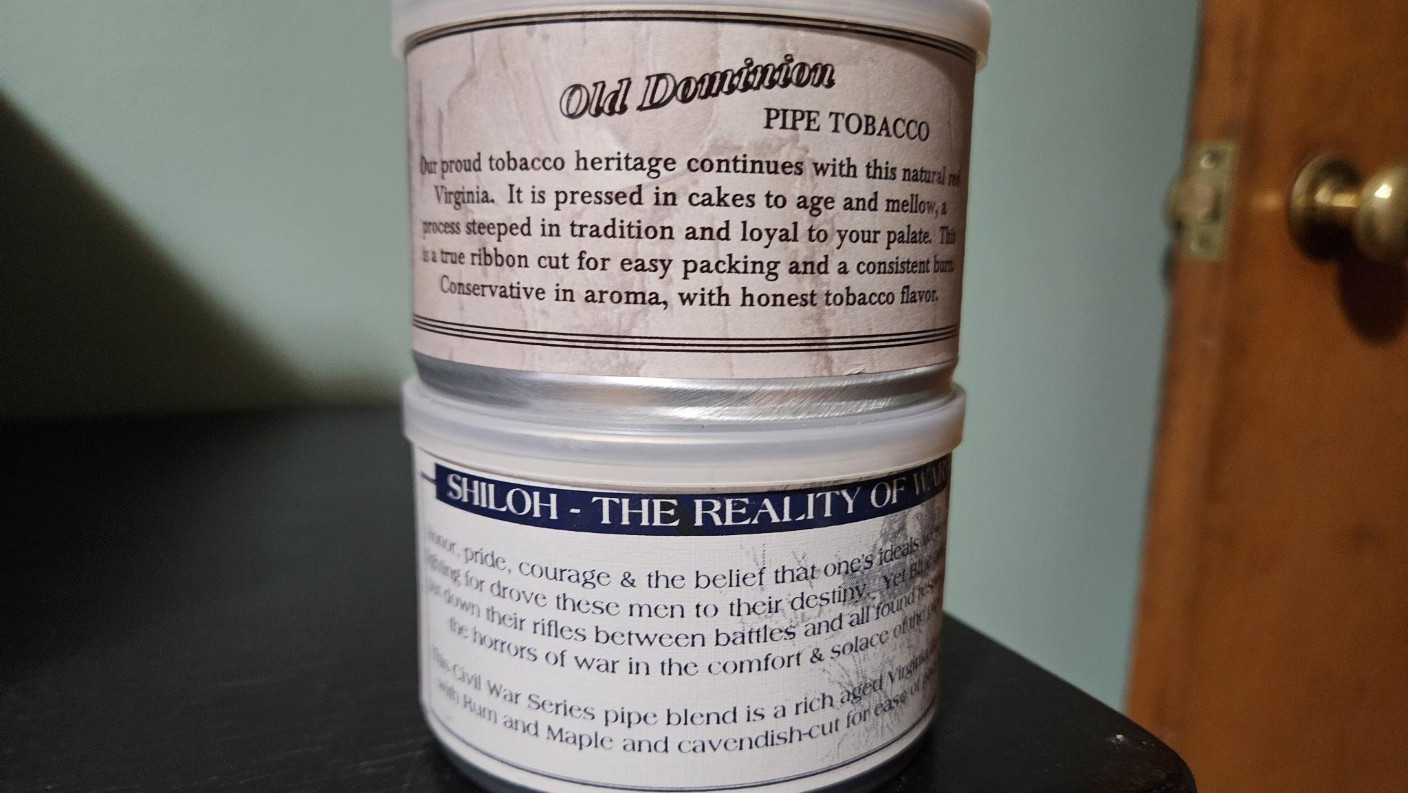(McClelland) Old Virginia Tobacco Company Shiloh and Old Dominion 50g tins Sealed **BUY IT NOW**