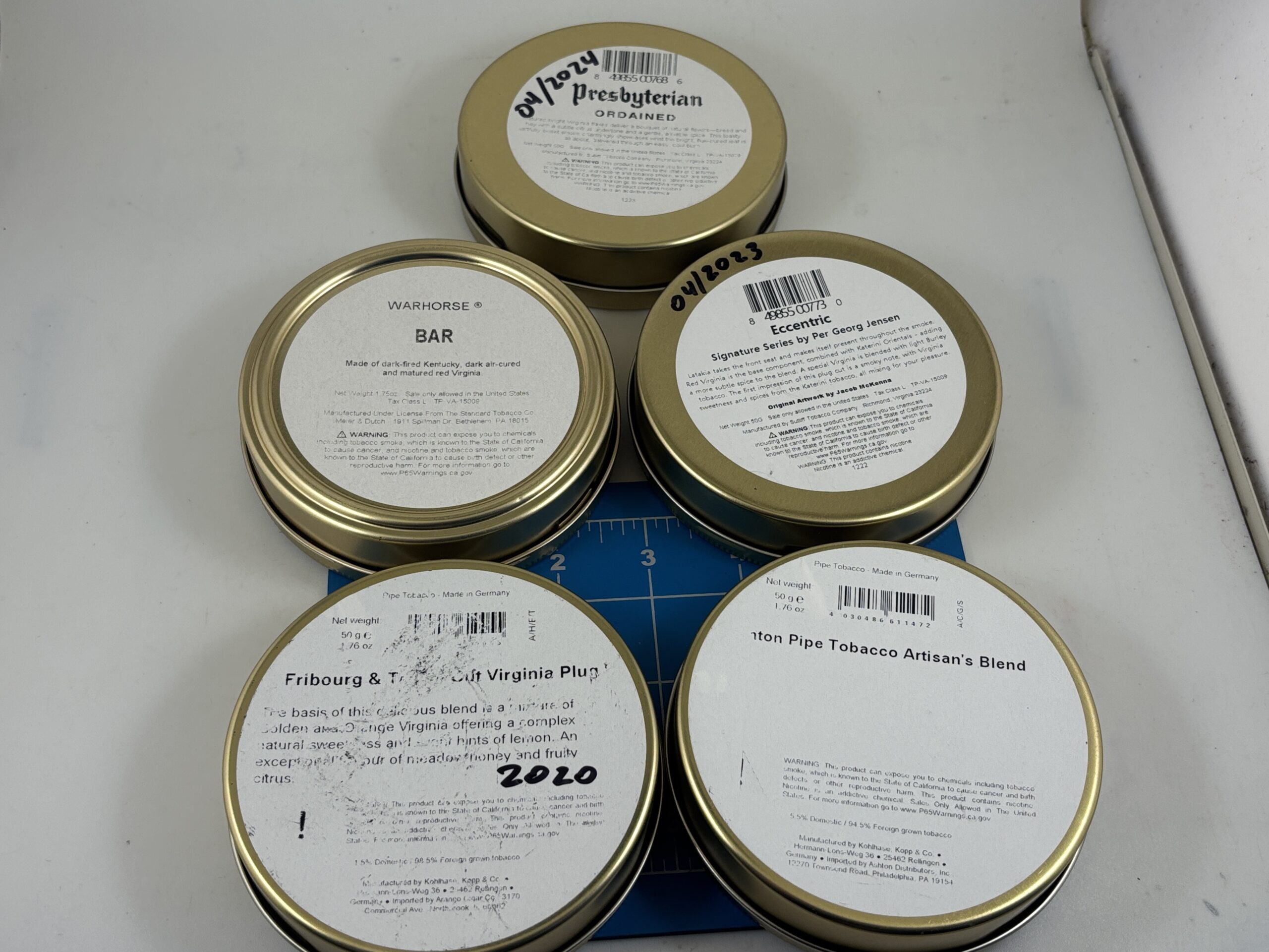 Lot of 5 Excellent Sealed 2020 50g. Tobacco Tins.