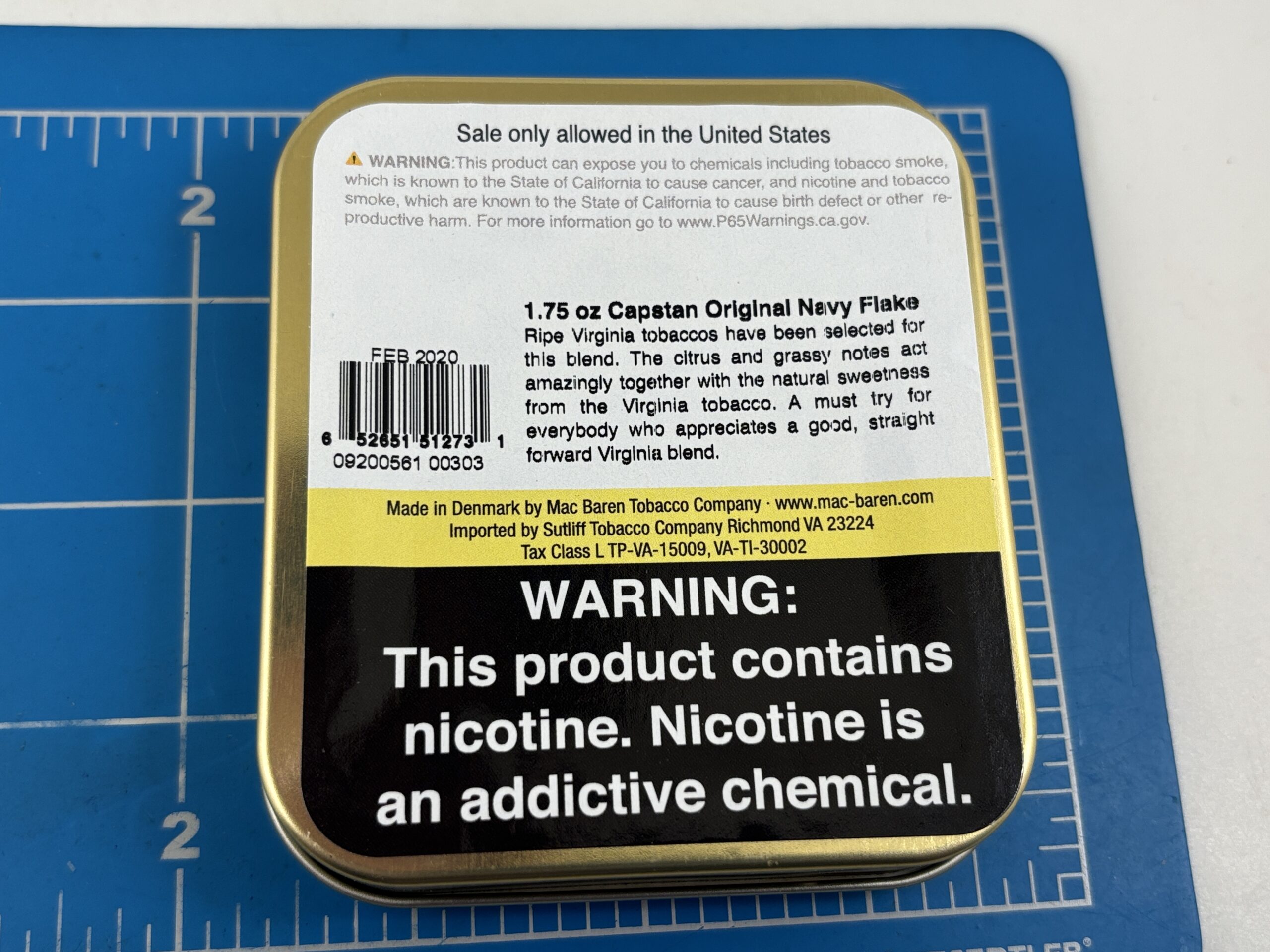 Excellent Sealed 2020 Original Navy Cut Capstan Tobacco 1.75oz. Tin.
