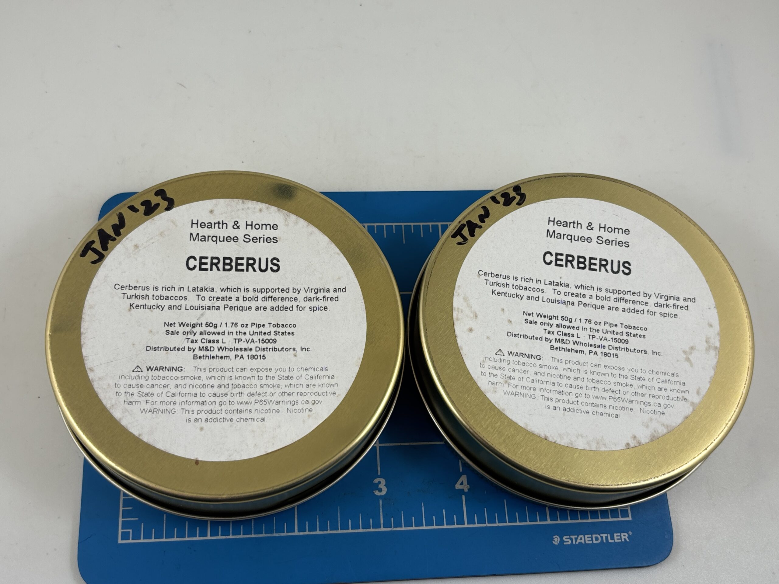 Lot of 2 Excellent Sealed 2023 Hearth & Home Gerberus 50g. Tobacco Tins