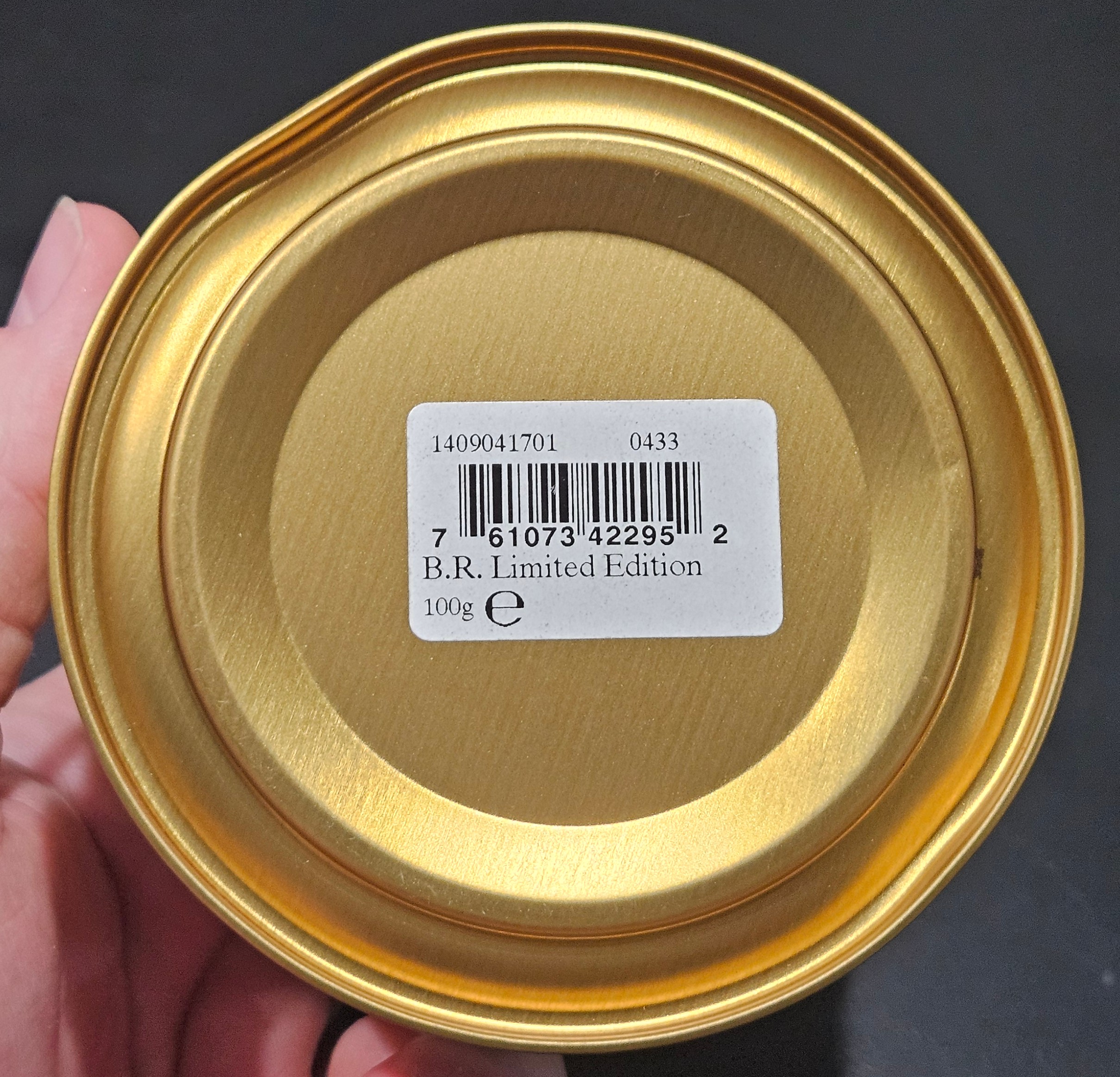 Sealed tin in great condition, besides a slight dent on the bottom corner