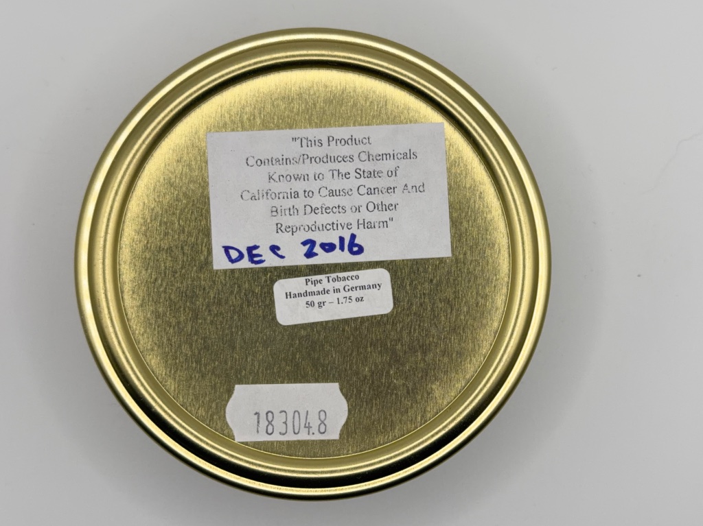 One unopened 50g tin of Dan Tobacco Gordon Pym from my private collection. Was purchased new by me in 2016 and cellared in the dark at a near constant 68 degrees ever since.