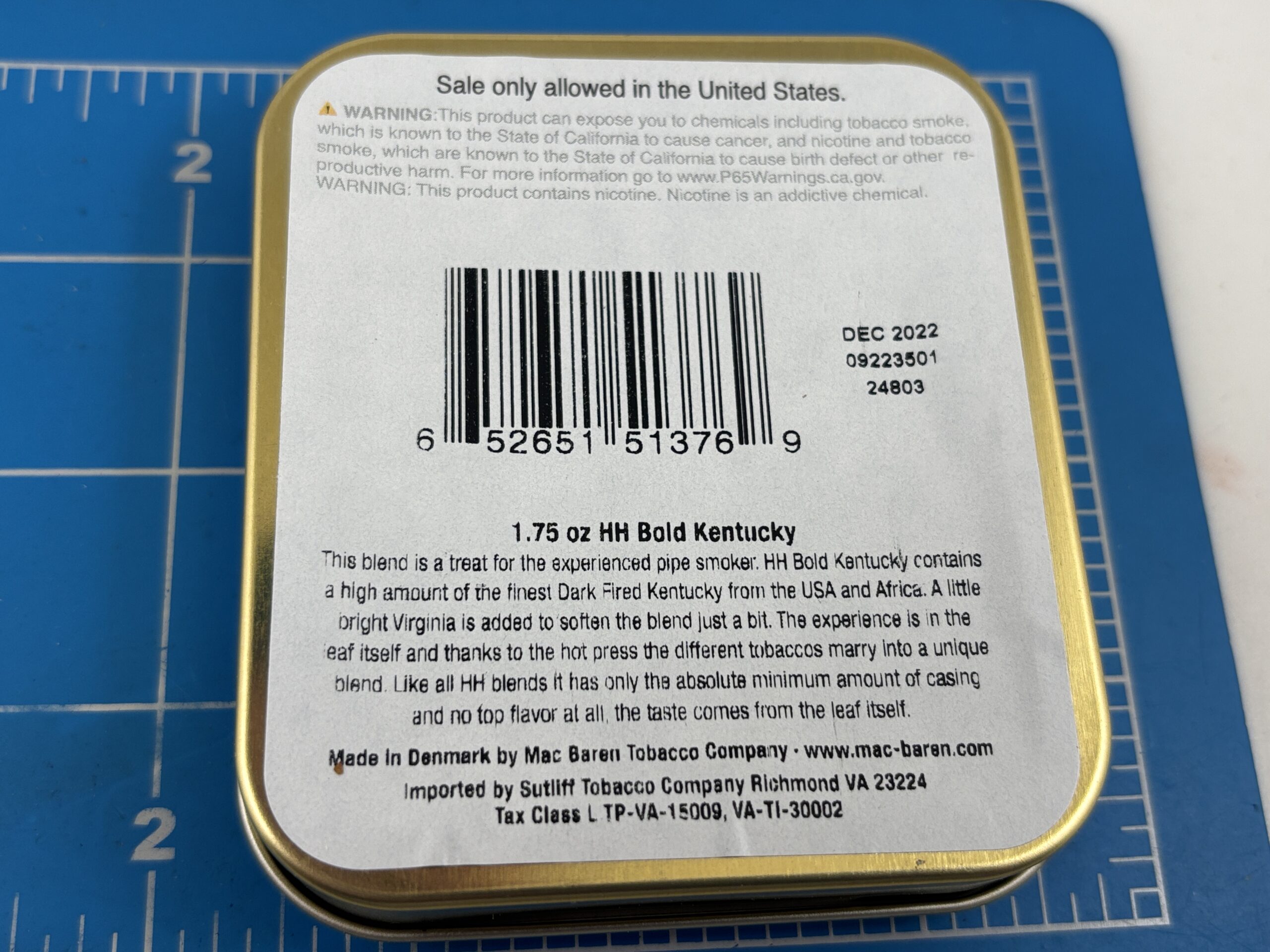 Excellent Sealed 2022 Mac Baren HH Bold Kentucky 1.75oz. Tin. Excellent Sealed Condition