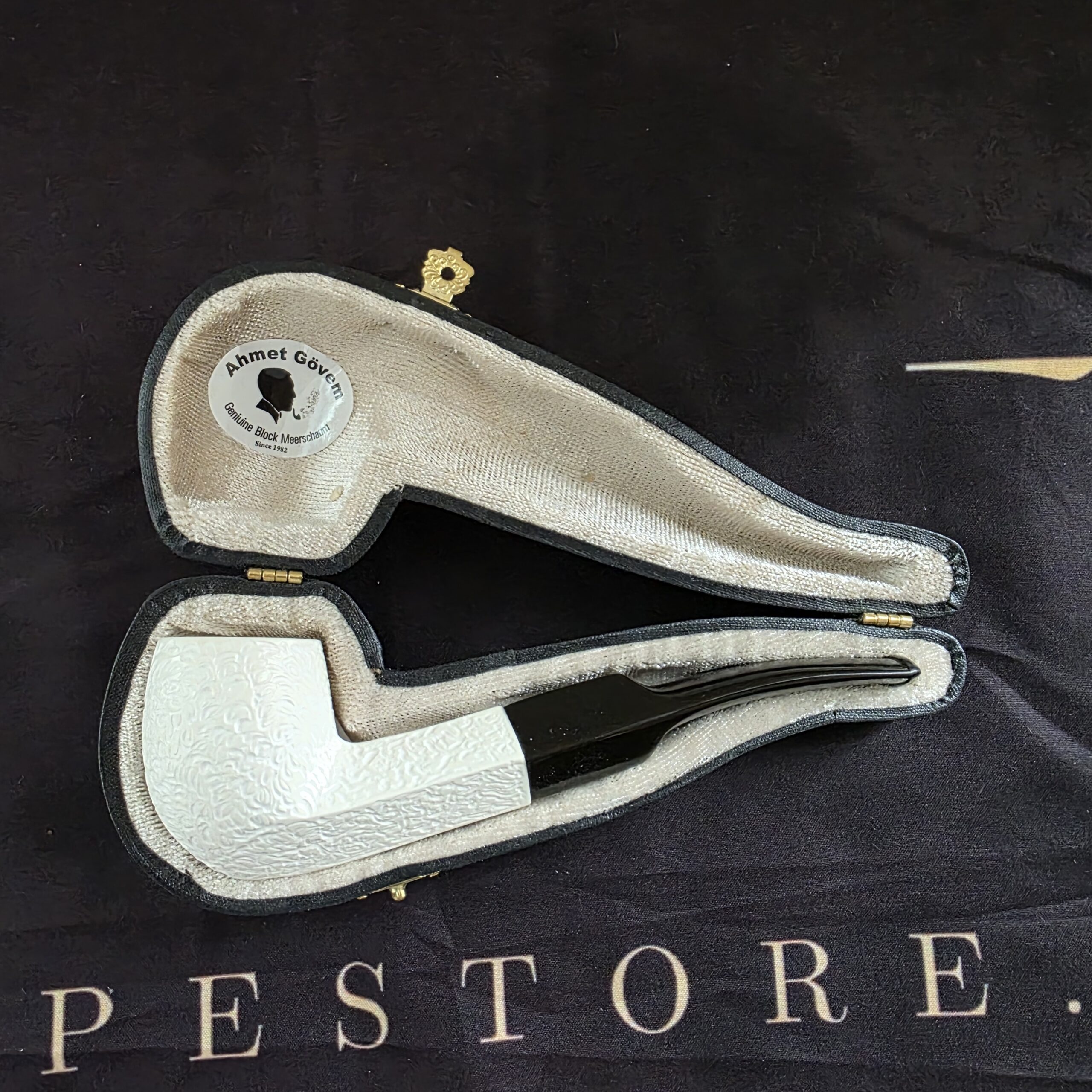 The intricate hand-carved design speaks to the artistry of this unique smoking pipe. A genuine block meerschaum bowl promises a cool, dry smoke. The bulldog style adds to its sophisticated appeal. This pipe arrives in a fitted case, perfect for safekeeping and travel. It makes a thoughtful gift for the discerning smoker.