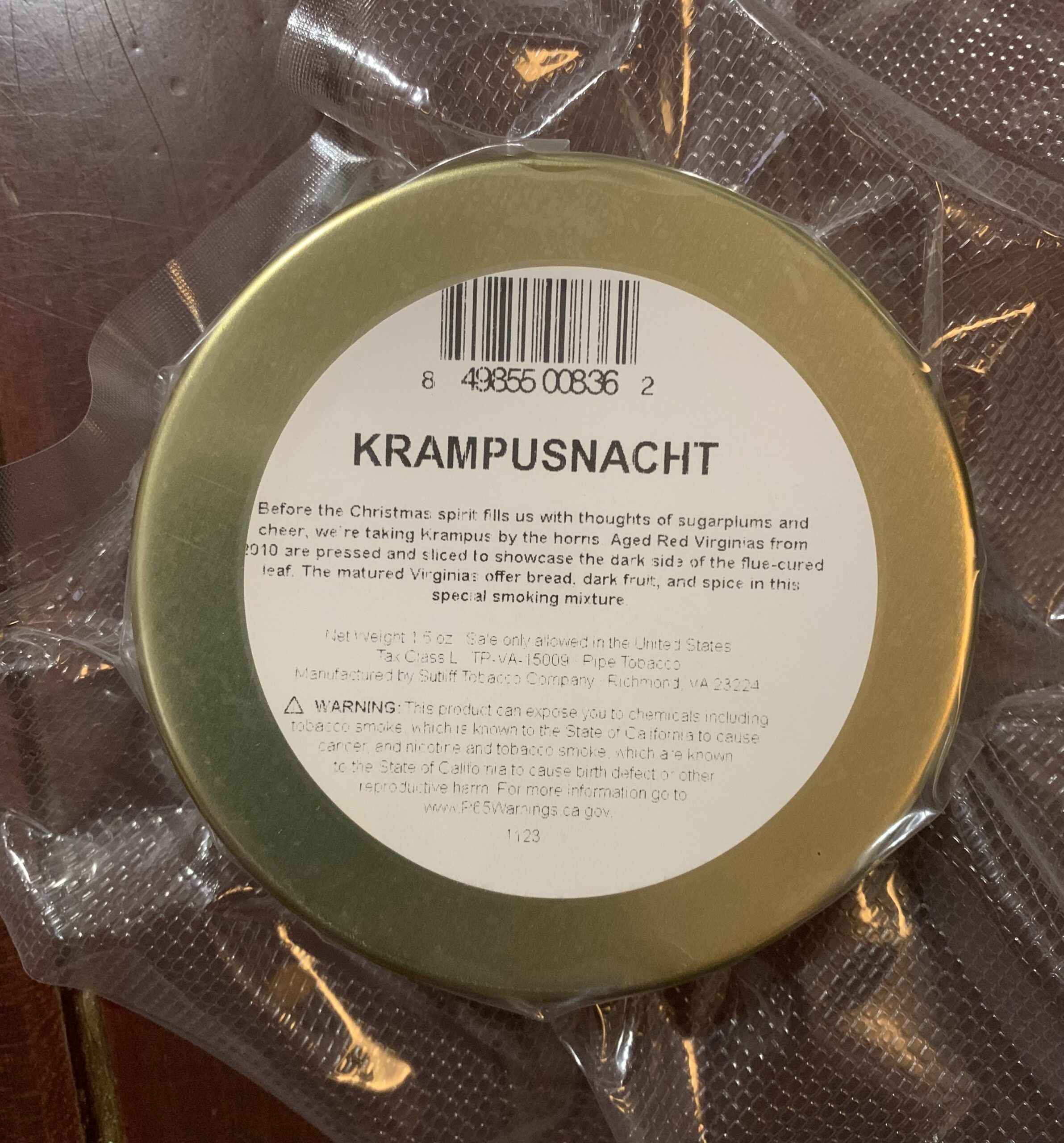 Before the Christmas spirit fills us with thoughts of sugarplums and cheer, we're taking Krampus by the horns. Aged Red Virginias from 2010 are pressed and sliced to showcase the dark side of the flue-cured leaf. The matured Virginias offer bread, dark fruit, and spice in this special smoking mixture.