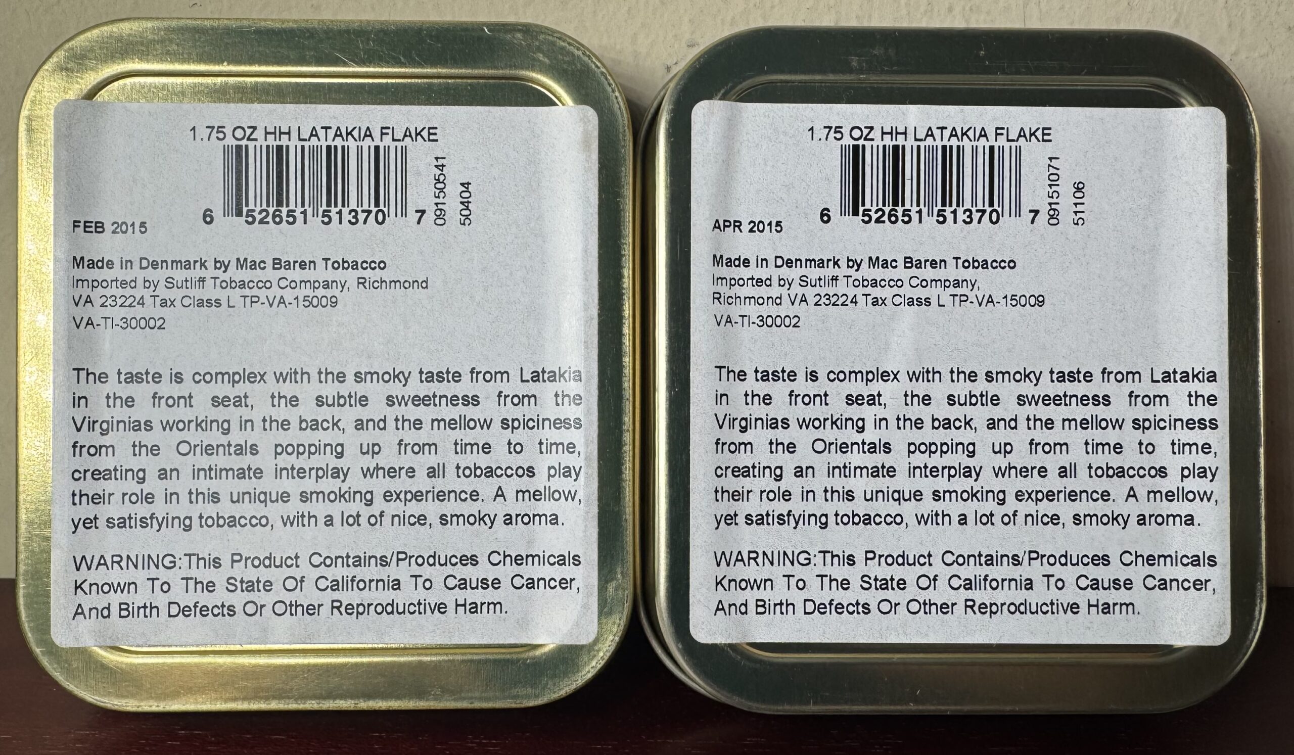 2015 - Lot of 2 - Mac Baren HH Latakia Flake - 50g