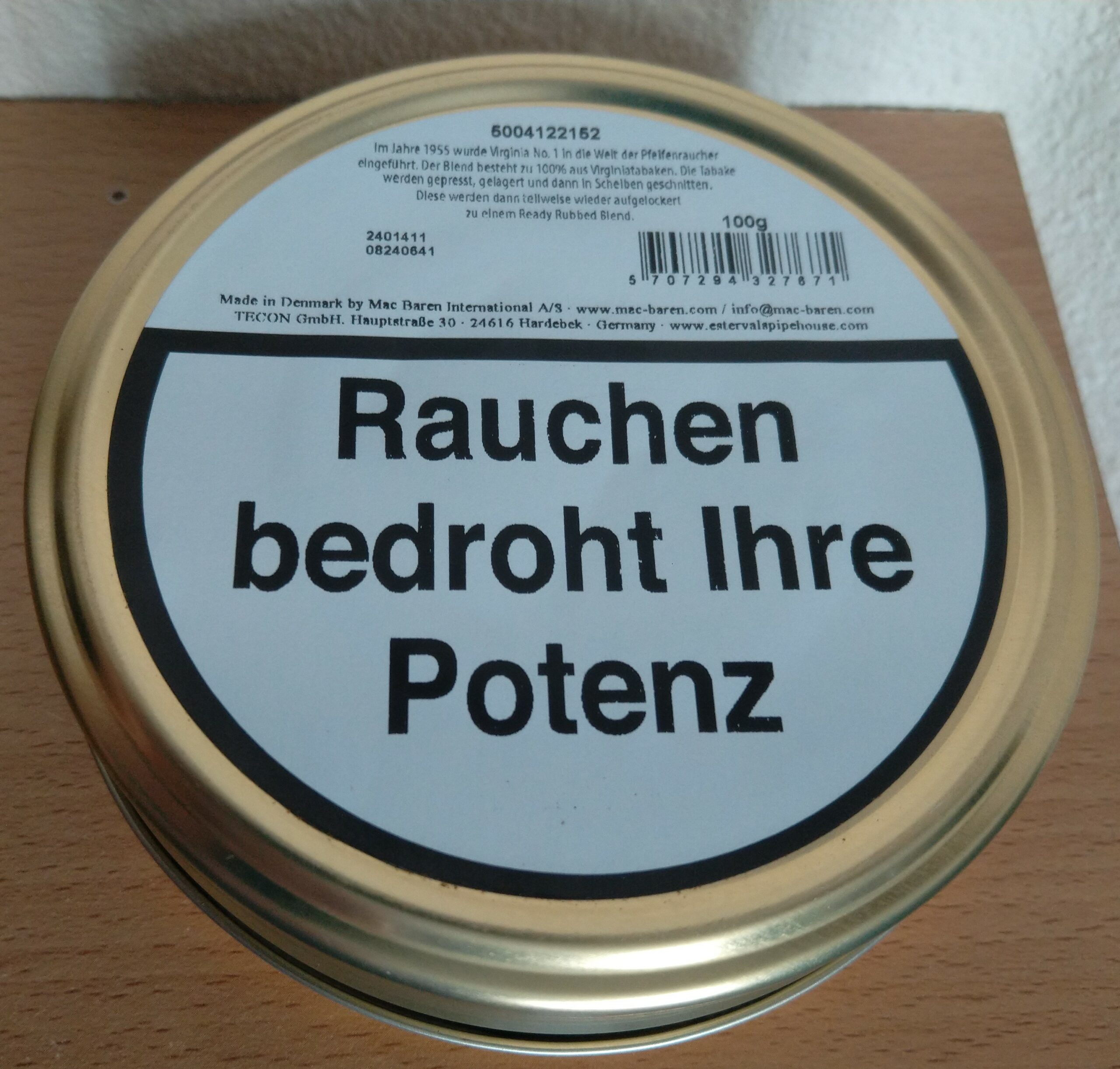 In 1955 Virginia No. 1 was introduced to the world’s pipe smokers. The blend consists only of Virginia tobaccos. Try the Virginia No. 1 and find out for yourself why Virginia No. 1 is considered to be a Mac Baren Classic blend.