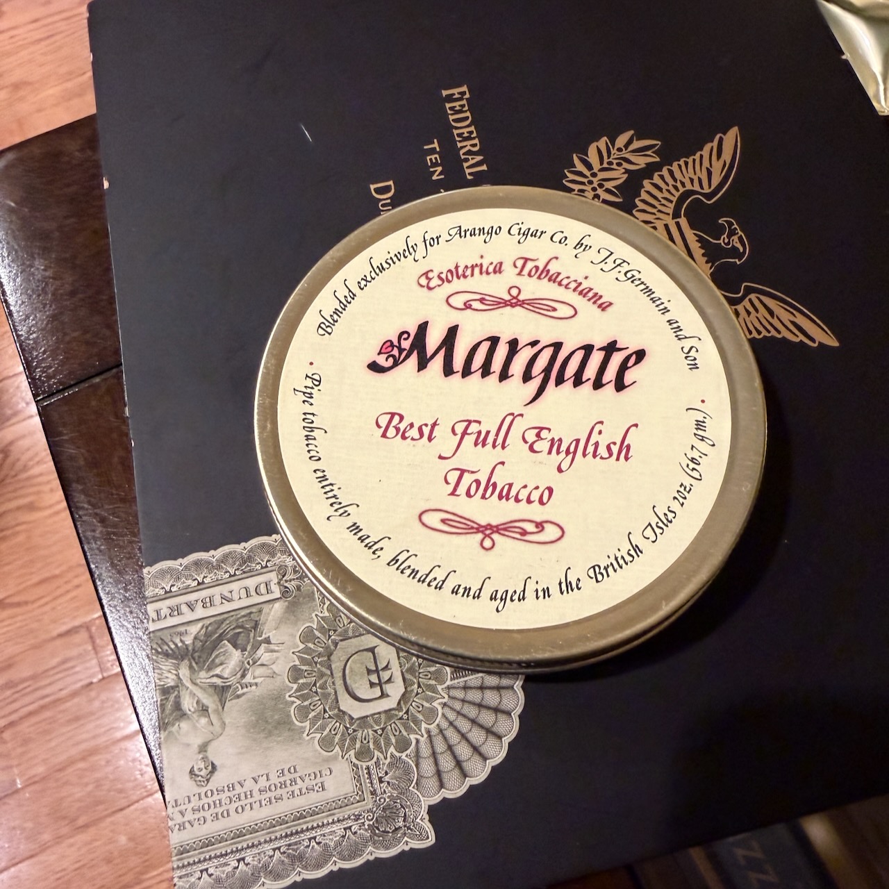For auction is one 2oz. tin of recent production Esoterica Margate. Factory sealed.