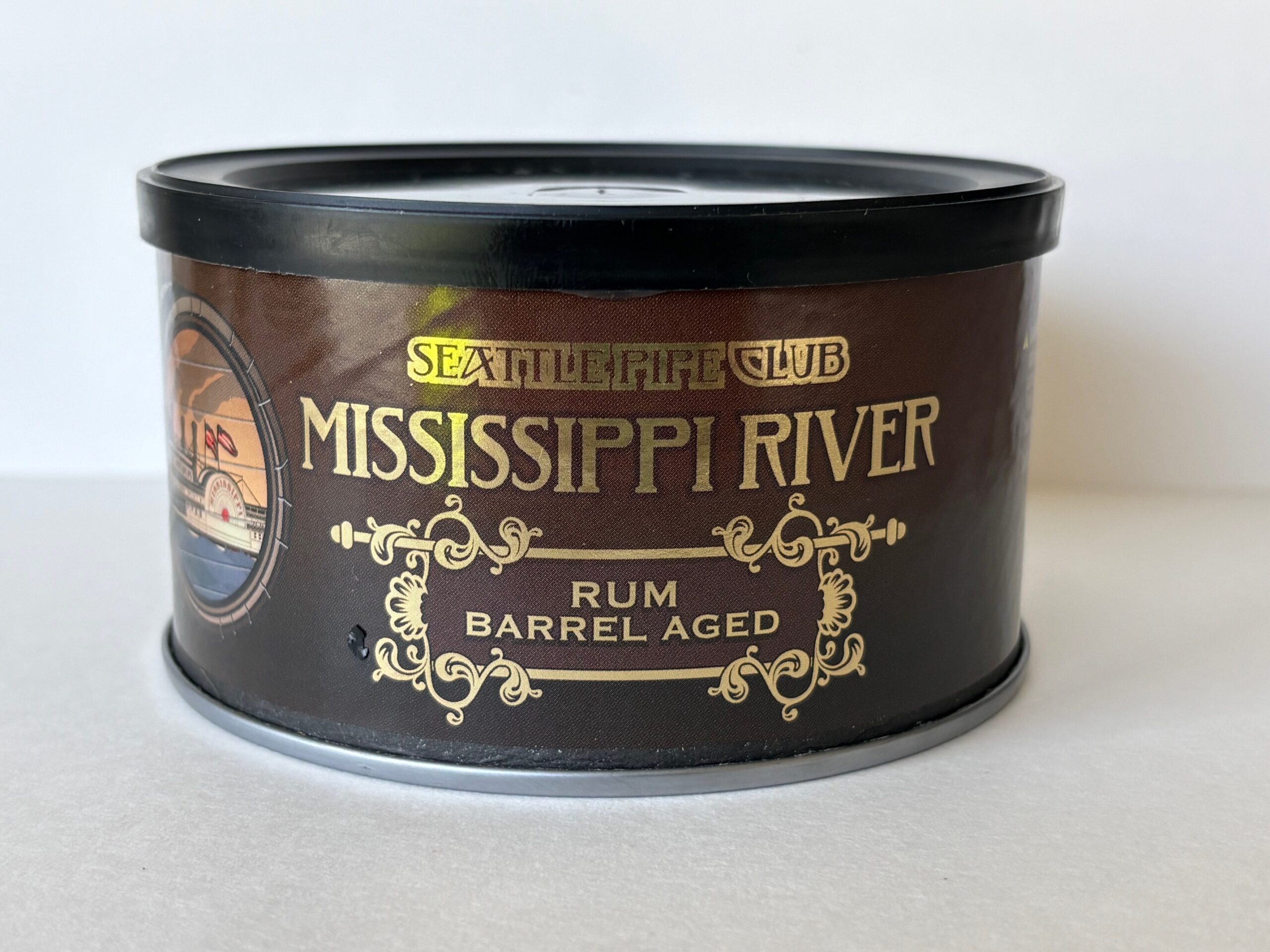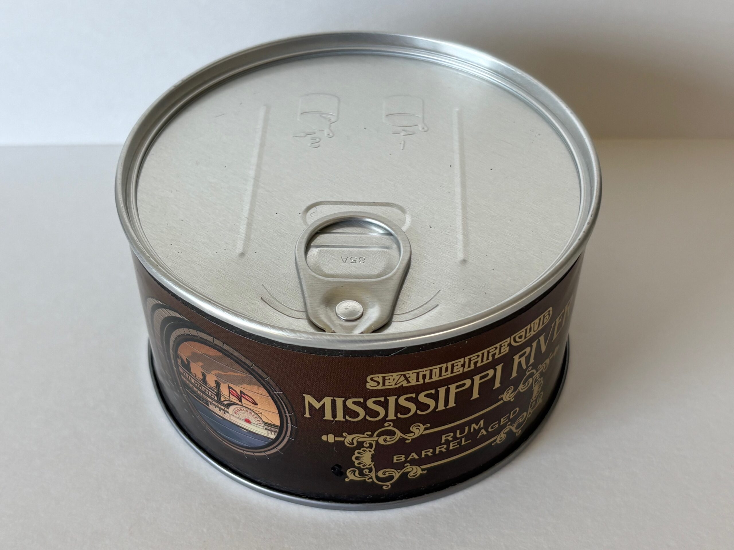 Unopened 2 ounce tin of 2020 Seattle Pipe Club Mississippi River Rum Barrel Aged.