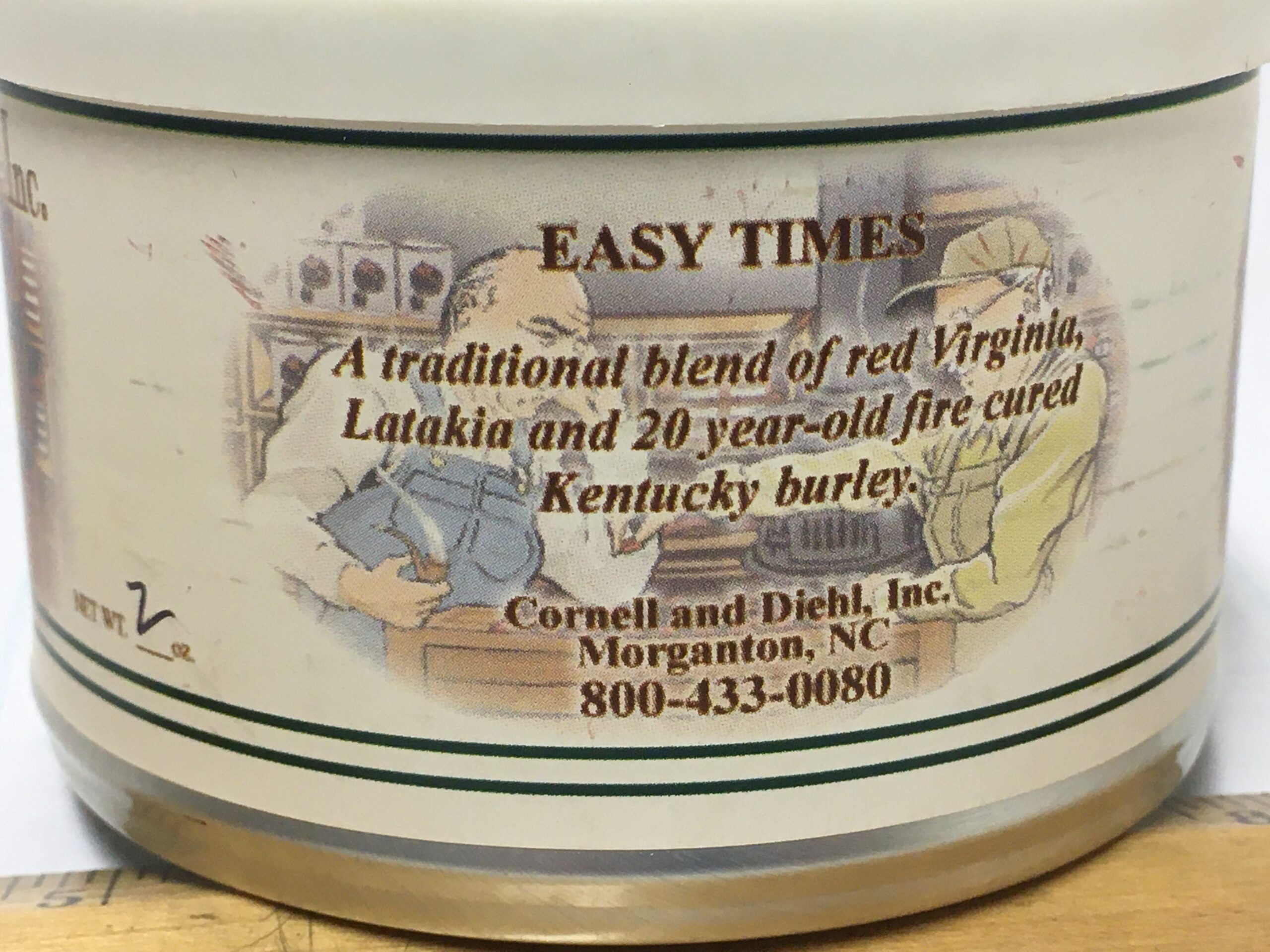 CORNELL & DIEHL, Inc. (2009) EASY TIMES Pipe Tobacco, in BULGING 2 oz sealed tin.