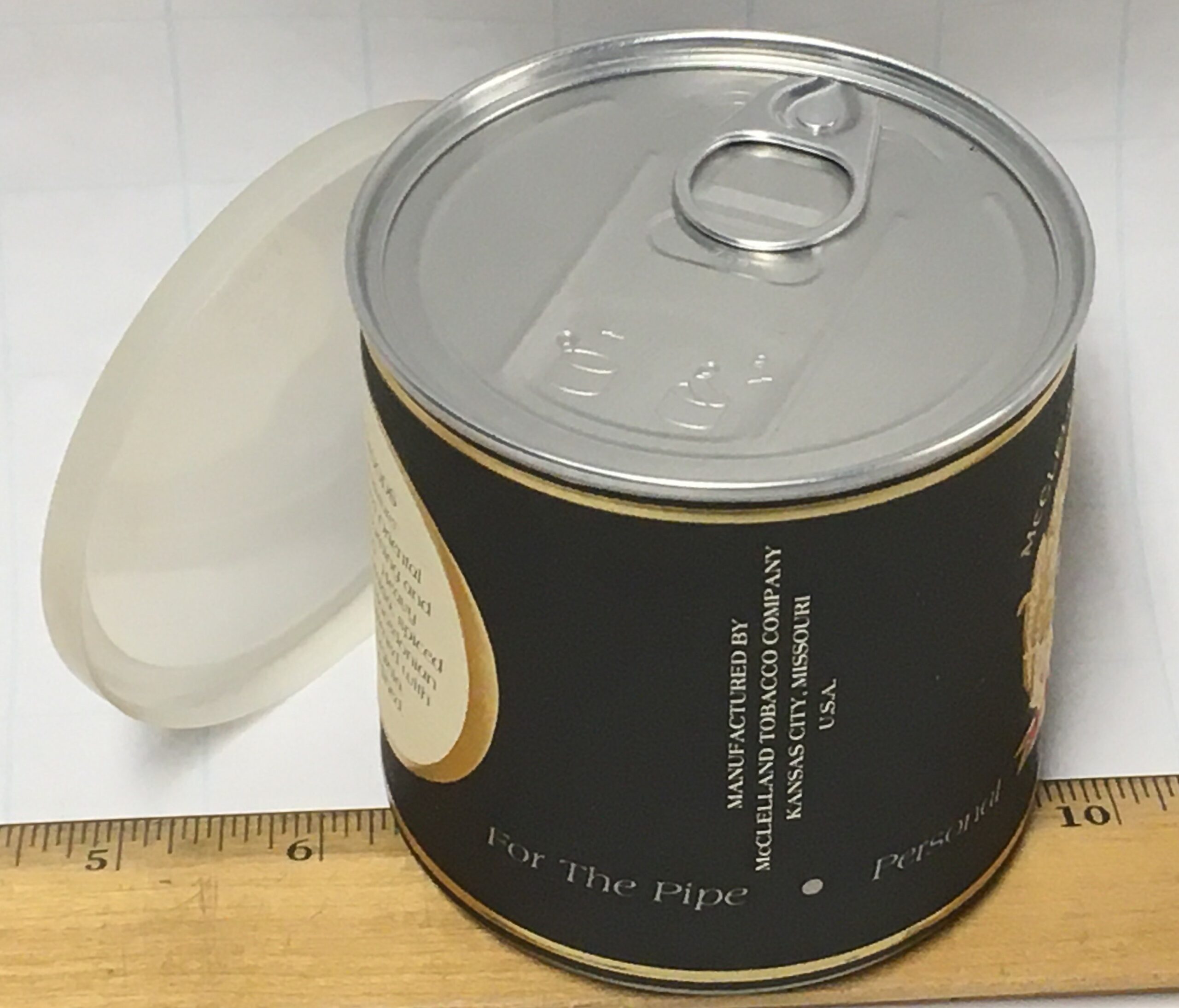 Tin was very well kept. Plastic lid still feels pliable, and has discolored only very slightly with age. Virtually perfect in all other respects. No cracks, dents, dings, stress points, etc.