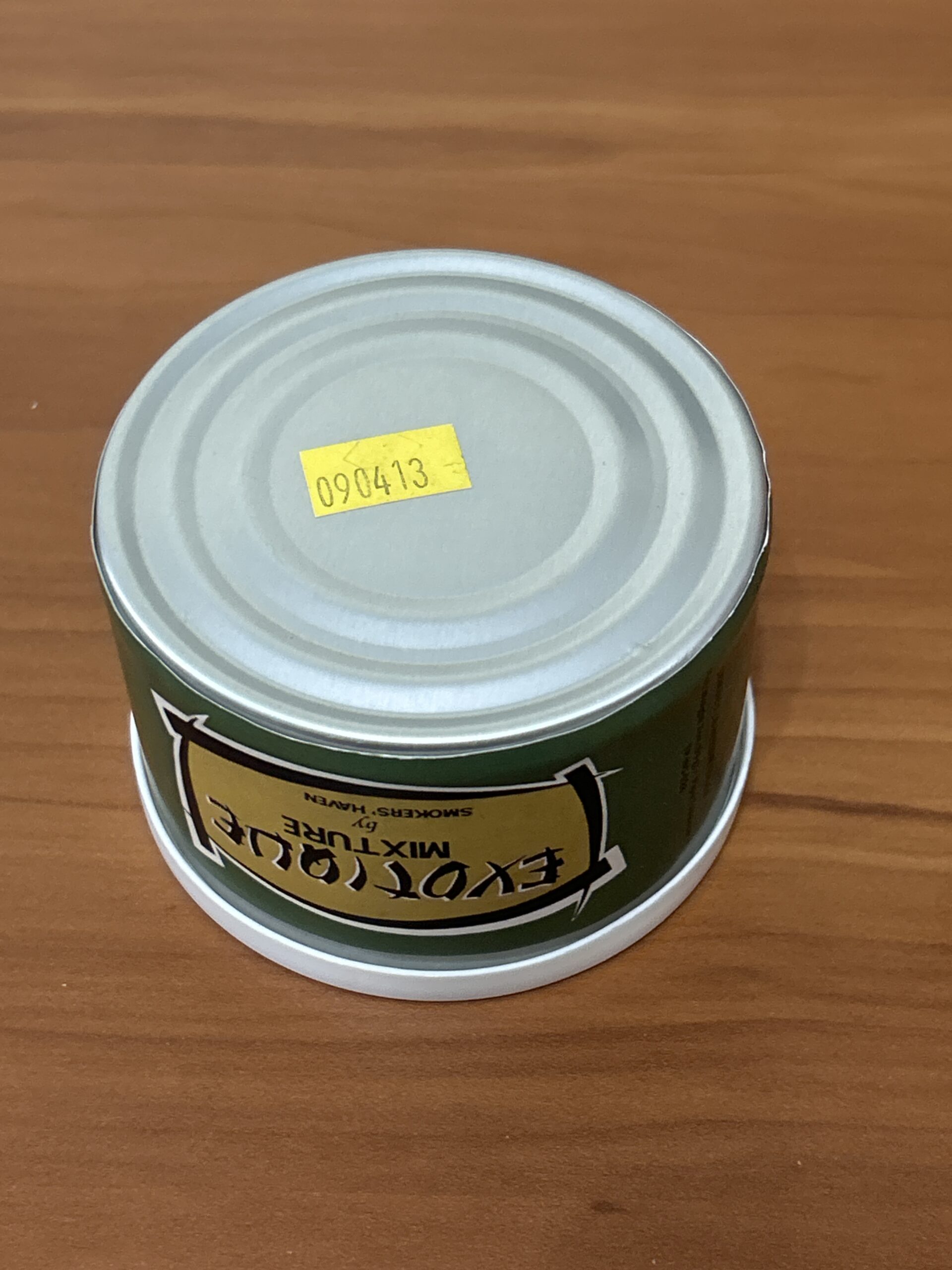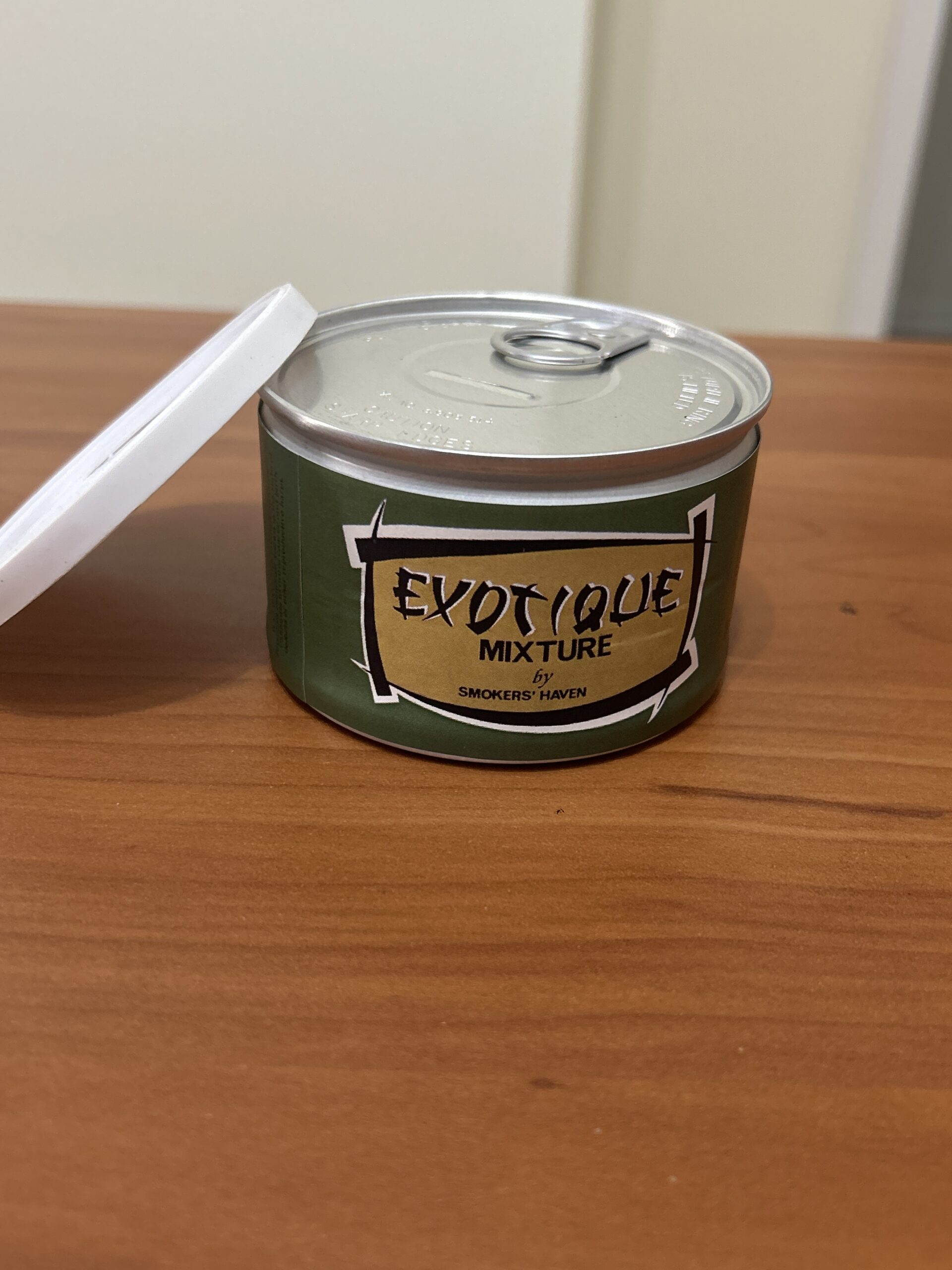 Smoker’s Haven, Exotique (2013), 50 gr sealed tin, has some age on it, tin is bulgy so that’s some good signs ahead, 5 day no reserve auction