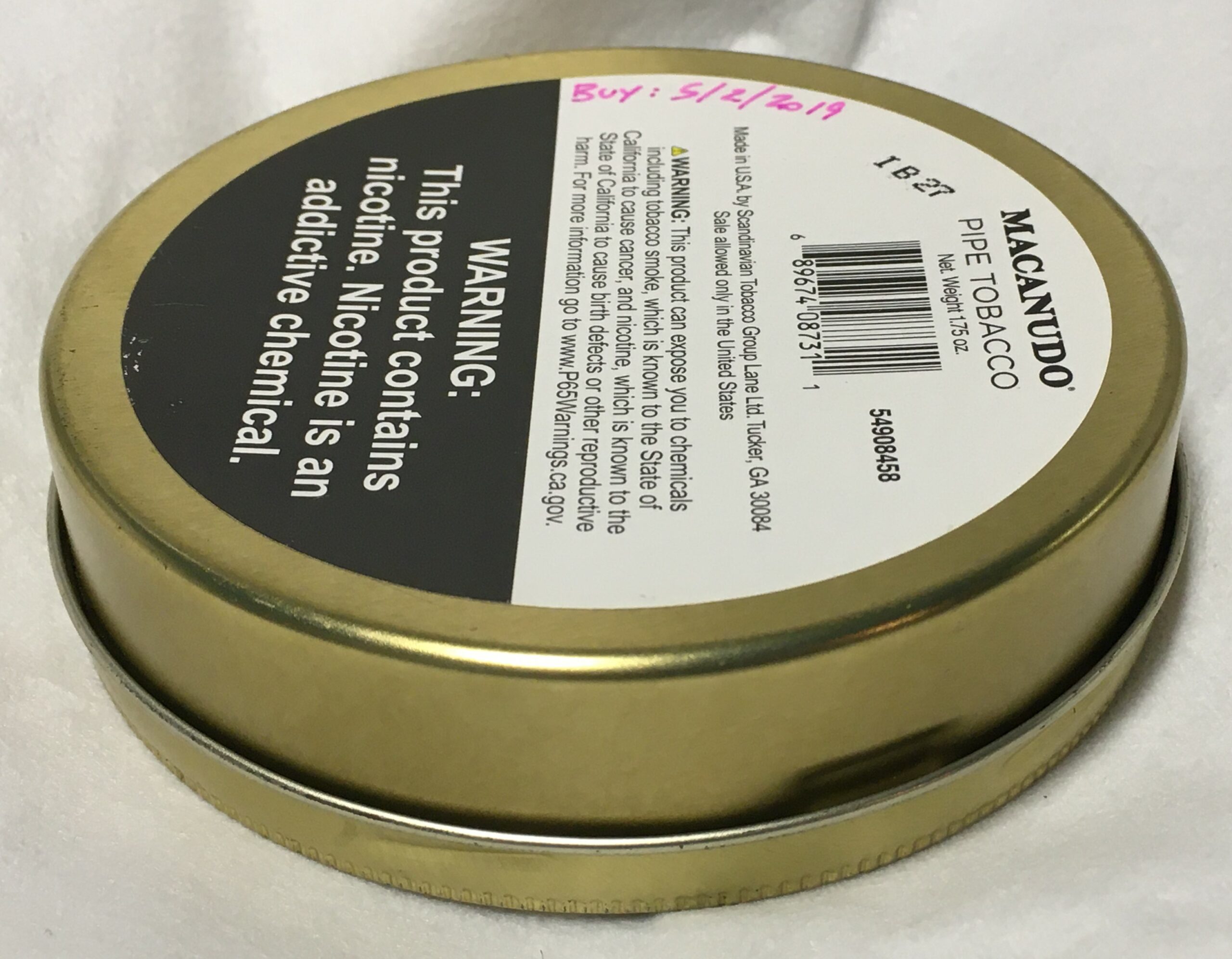 Code on bottom label: "54908458" may denote 2008 packaging? Handwritten "5/2/2019" is when it was acquired by the previous holder in 2019.