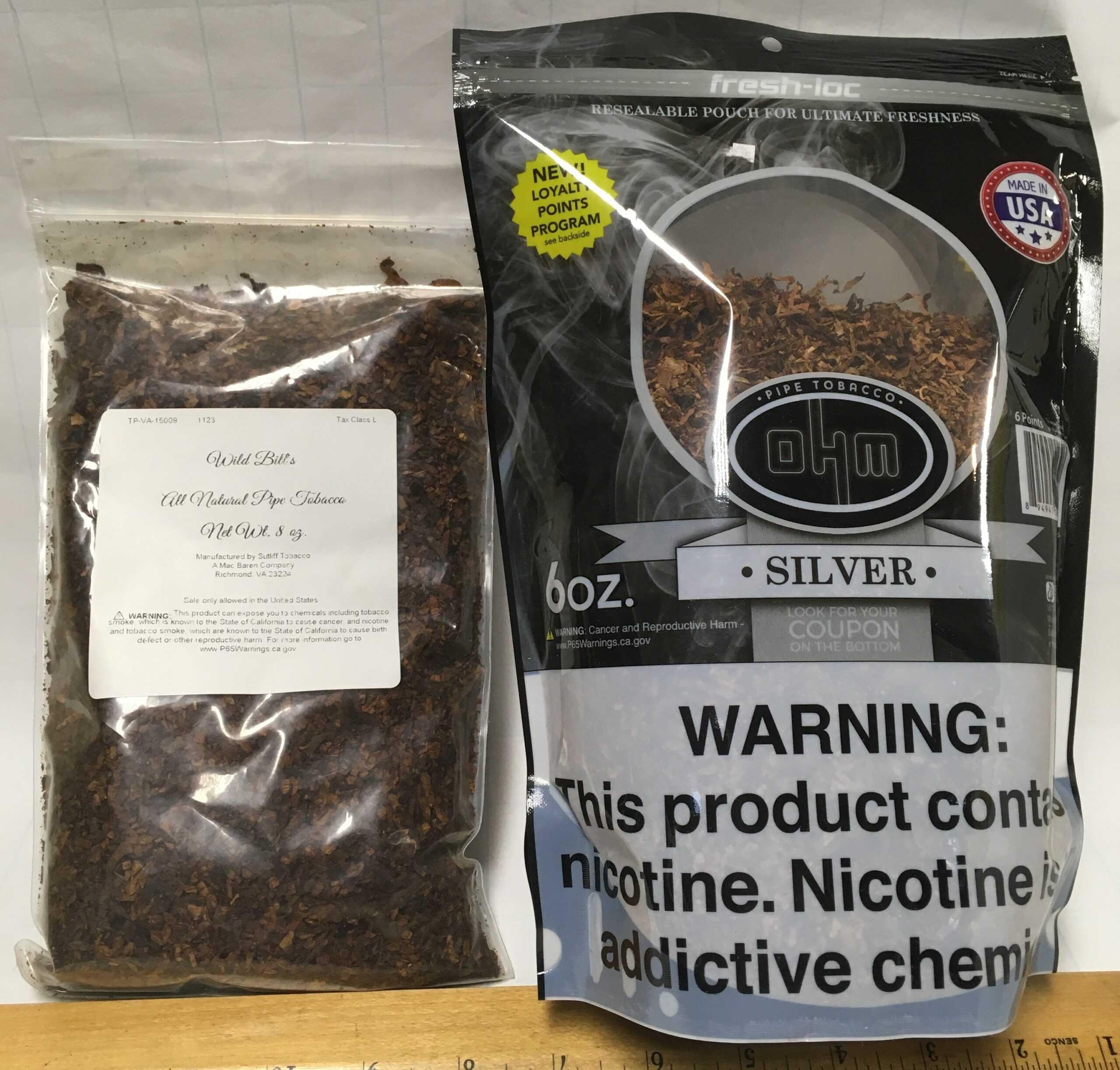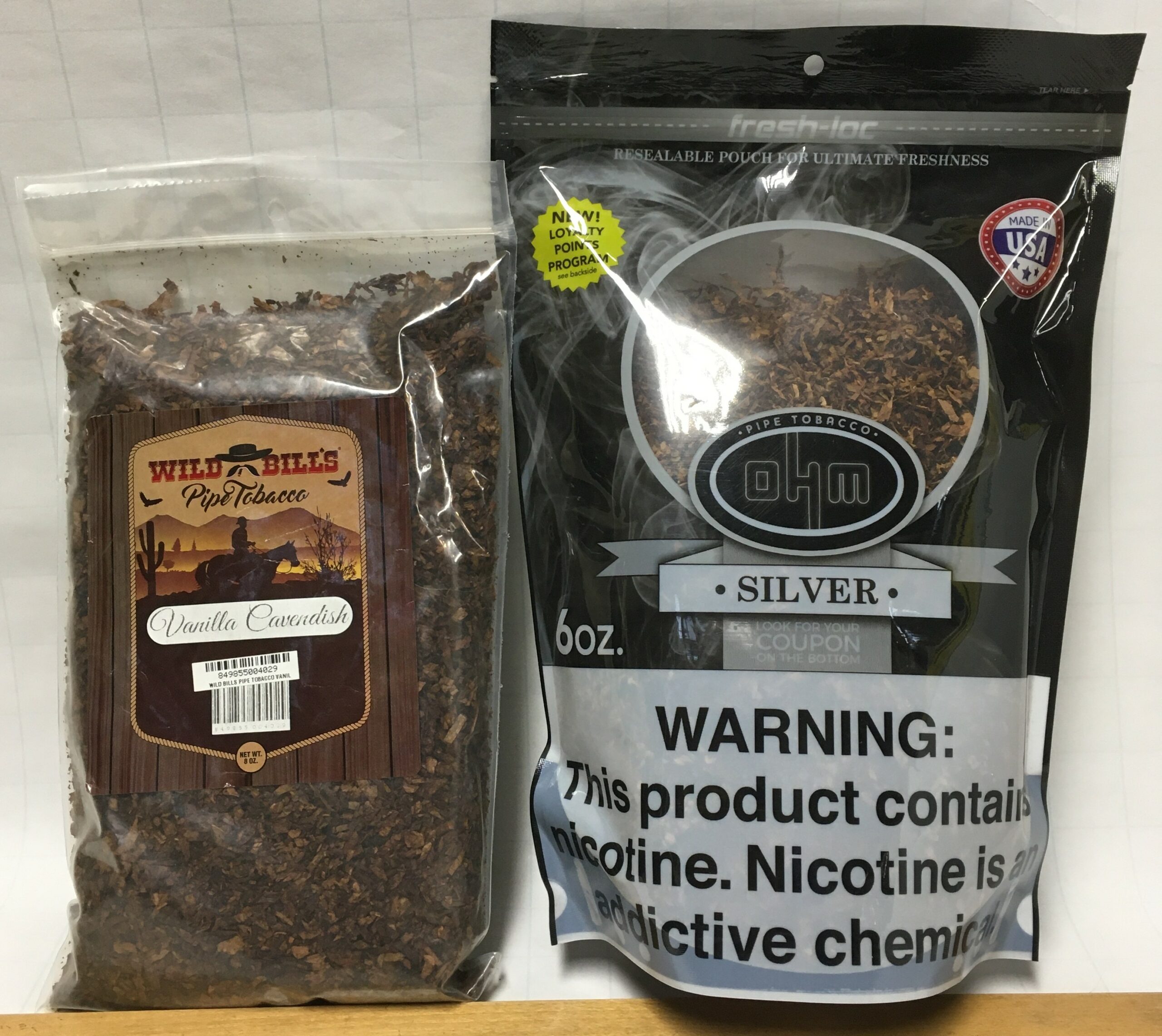 Wild Bill's / SUTLIFF (2023) VANILLA CAVENDISH 8 oz + OHM (2021) SILVER 6 oz, Pipe Tobaccos - 2 Sealed Bags