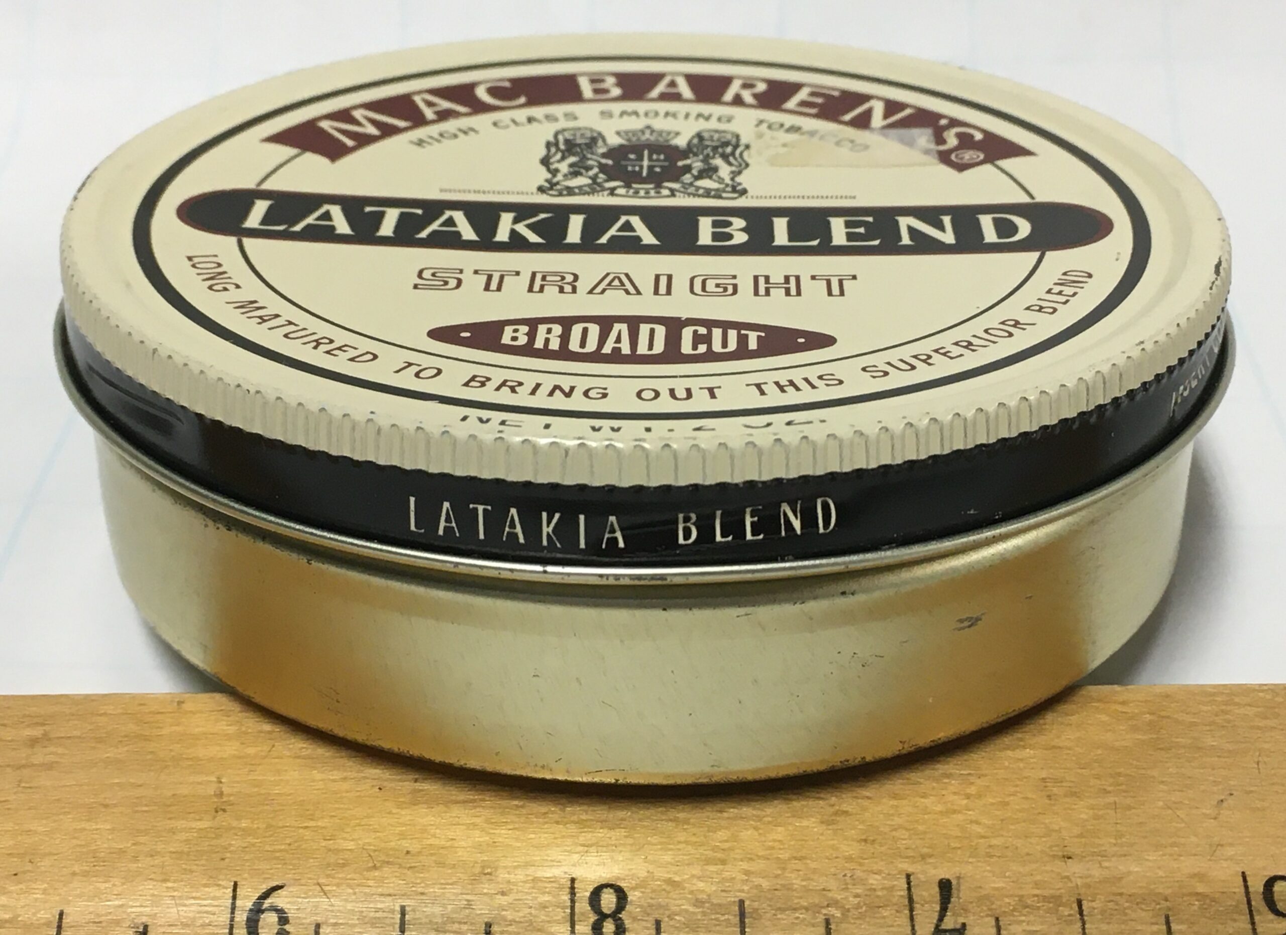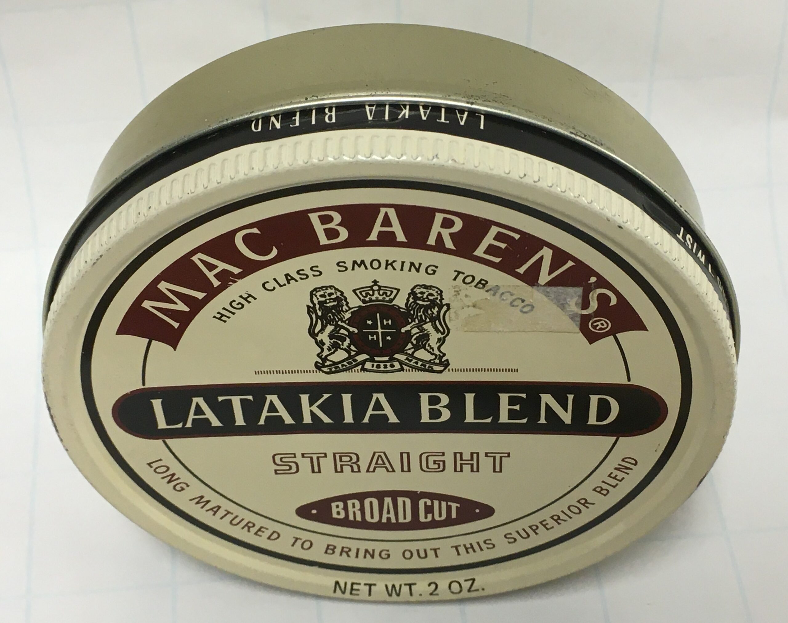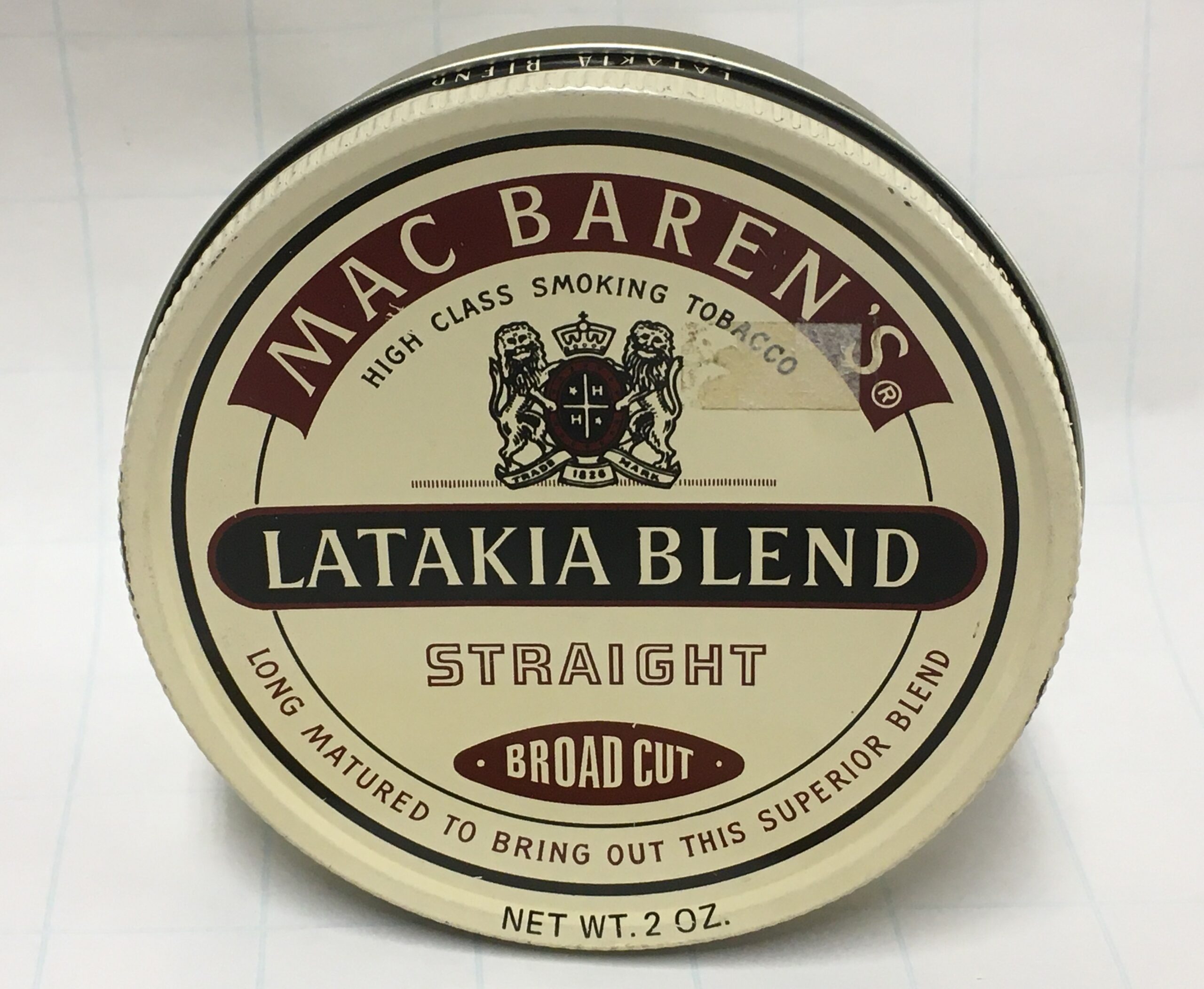 MAC BAREN'S (1978-1980s) LATAKIA BLEND - STRAIGHT BROAD CUT - 2 OZ. Painted Lid - Sealed Tin