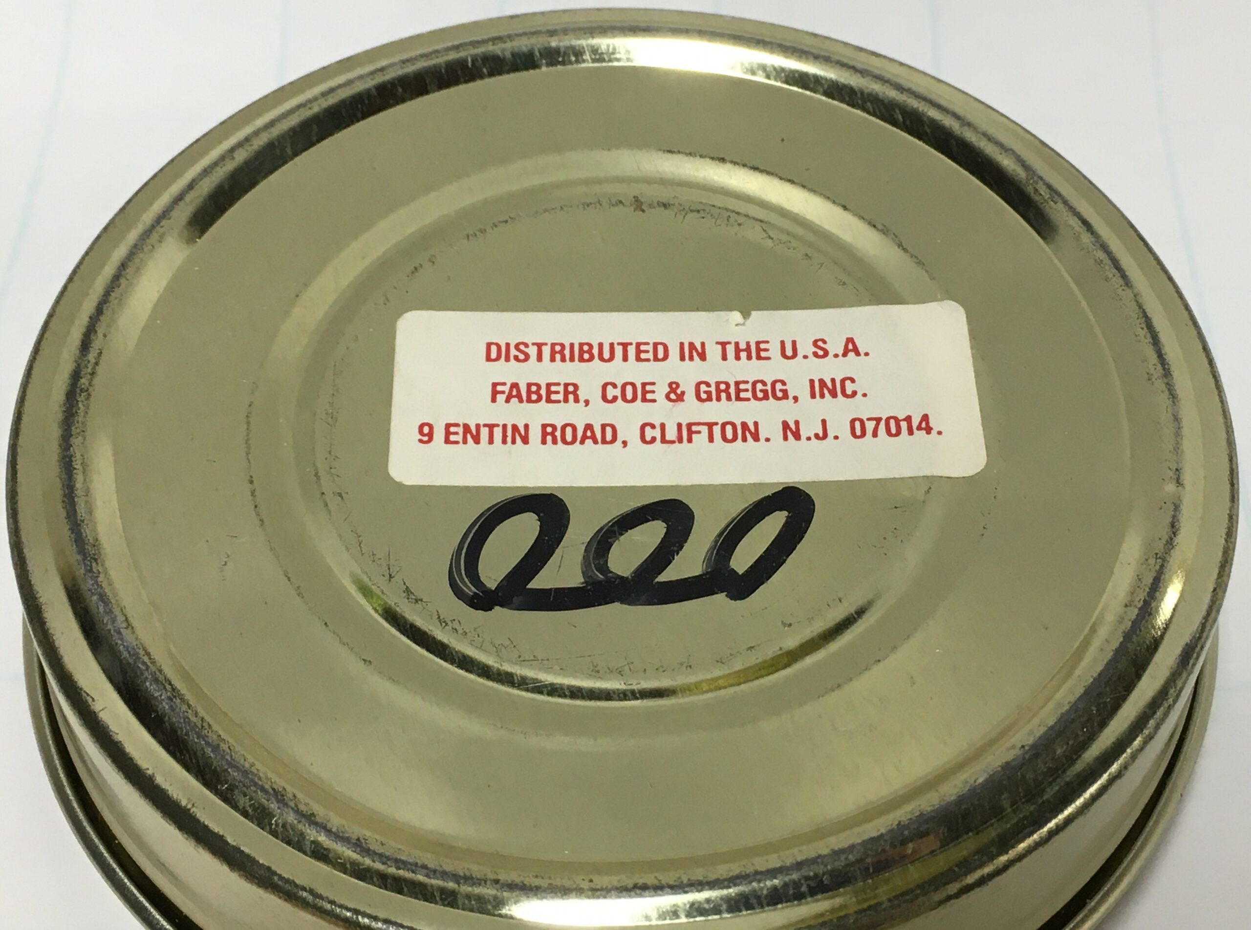 Handwritten "000" in sharpie on bottom ... meaning is unknown.