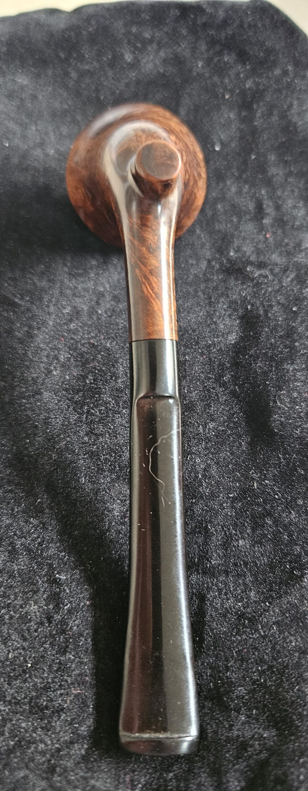 Unsmoked Genod pipe. This is a very small pipe. It would make a great tester pipe. Thete are some fills but they are hard to see due to dark stain.
