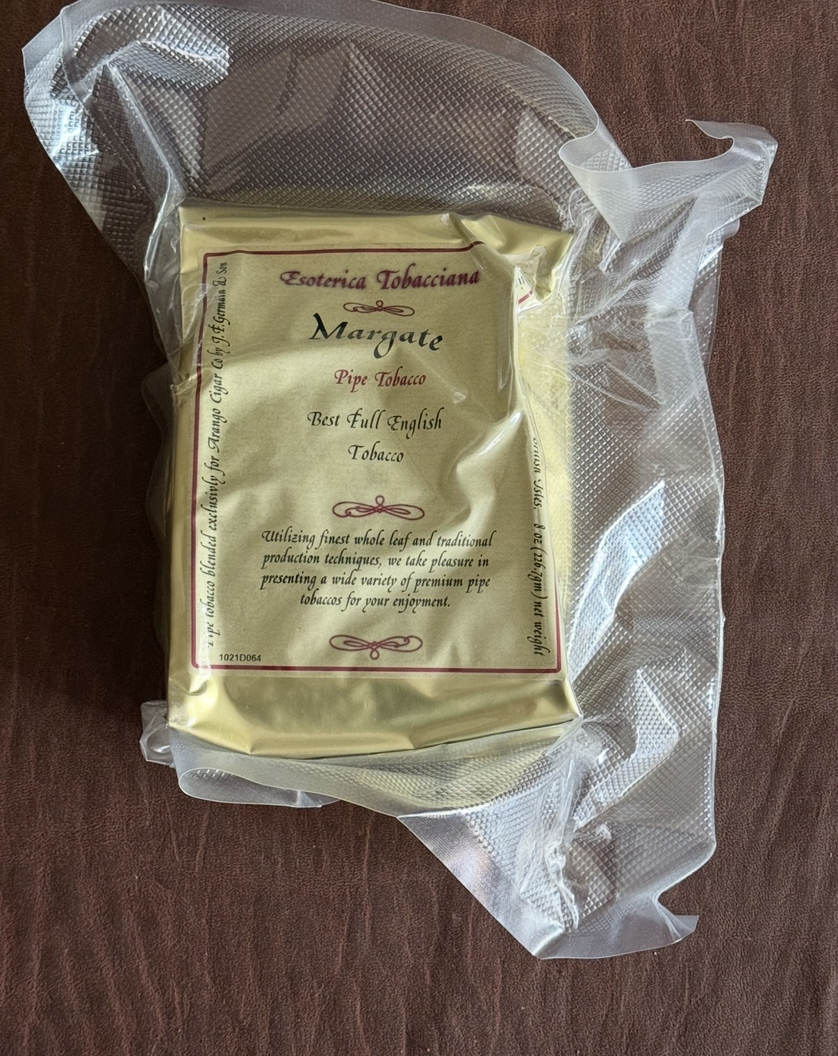 8oz sealed Esoterica Margate- Best Full English Tobacco, sealed factory bag is air sealed again in Mylar.