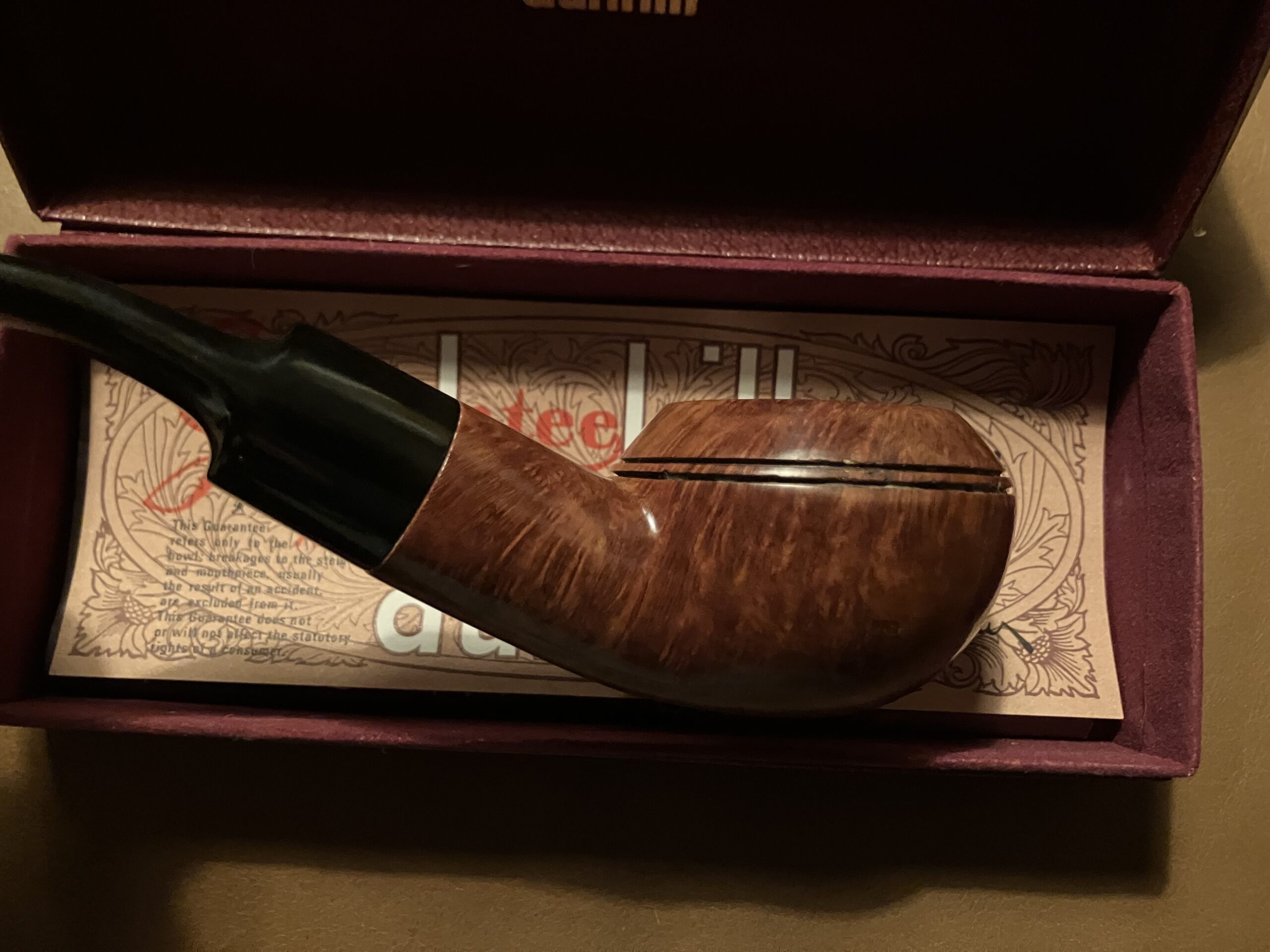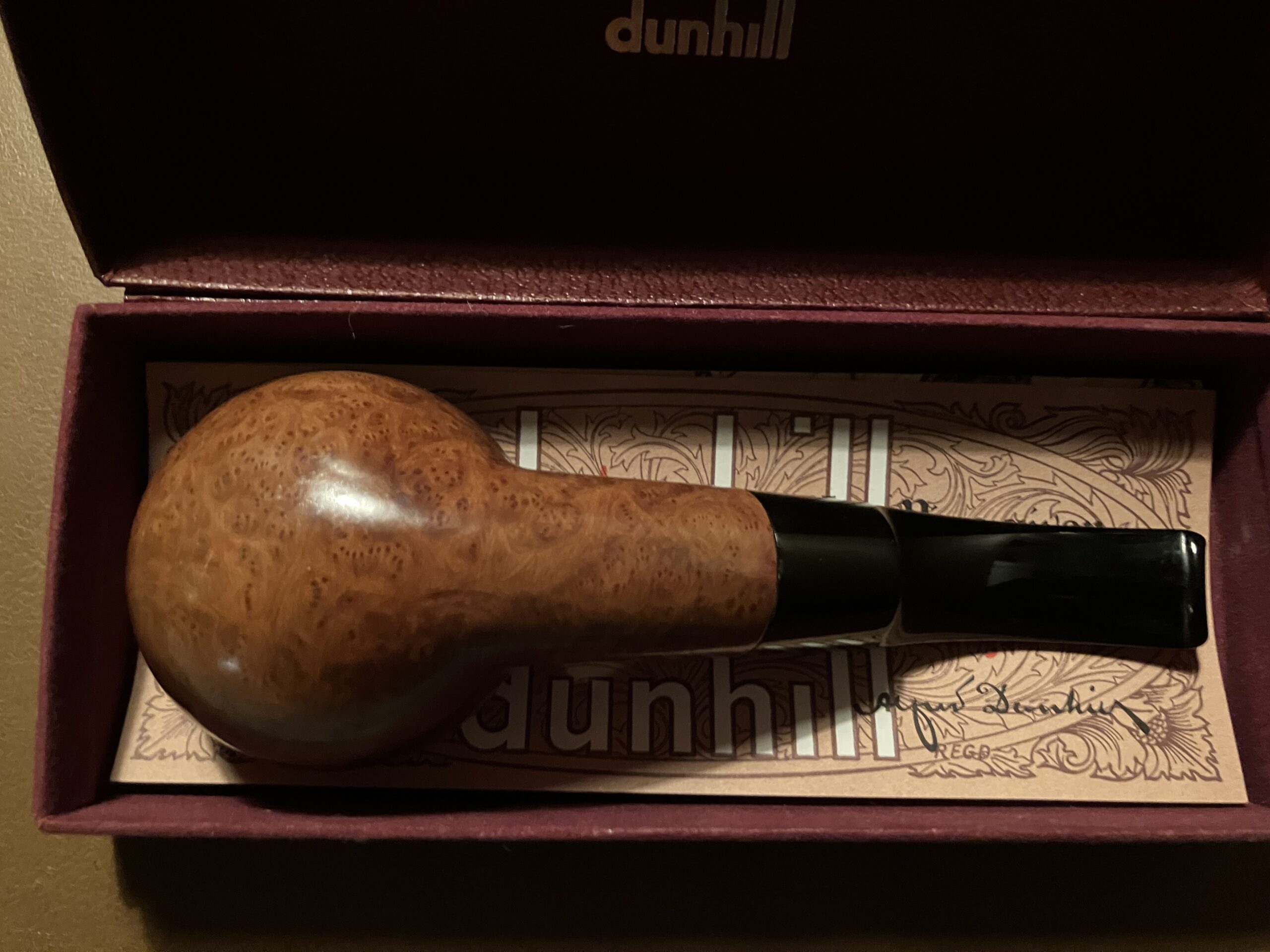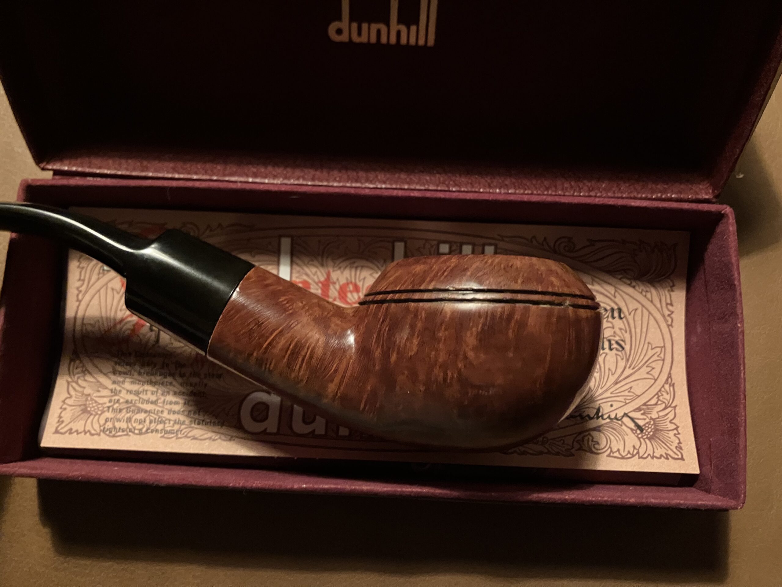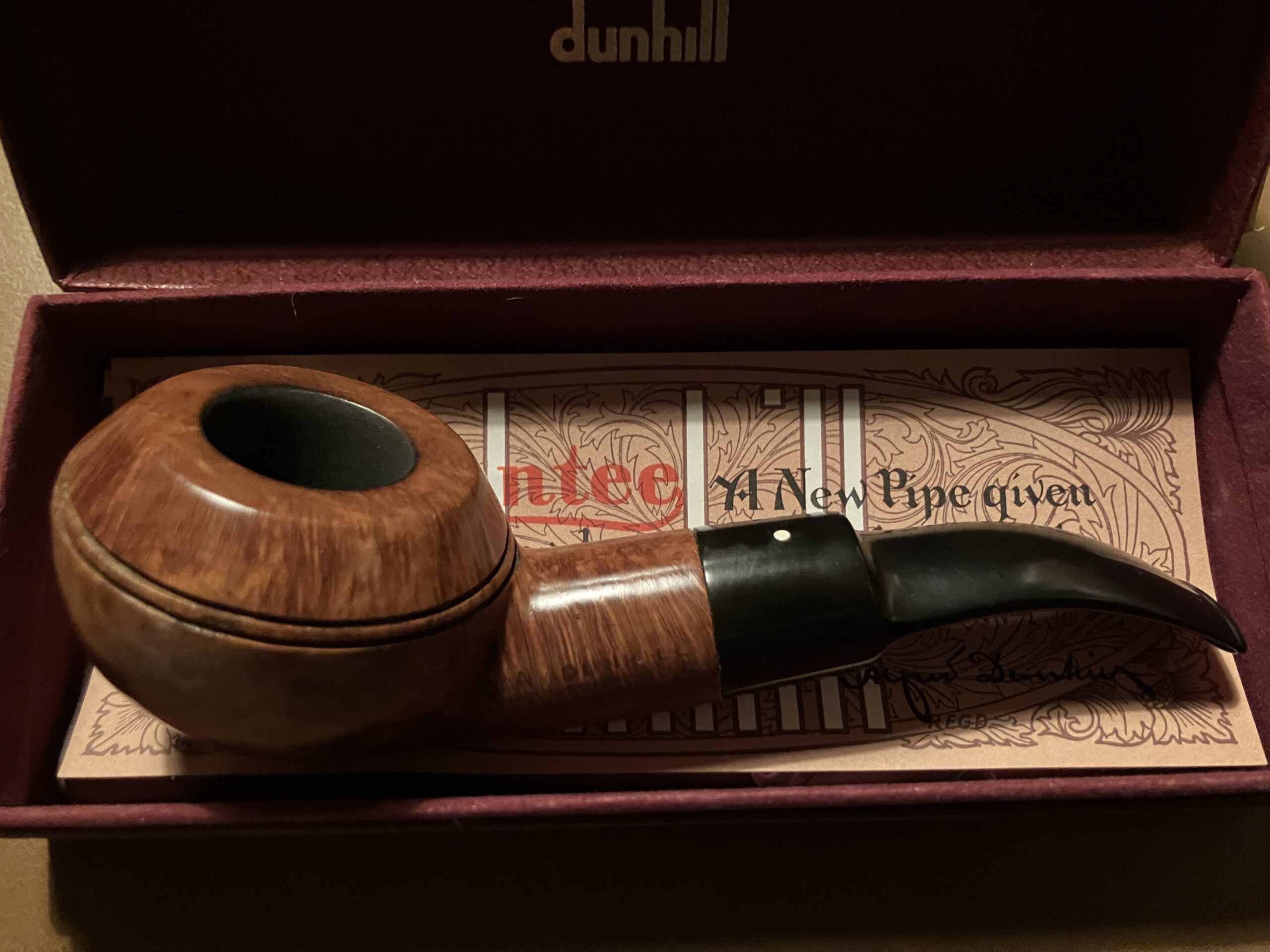 Rhodesian Quarter Bent, Round Shank, comes with a Dunhill box.