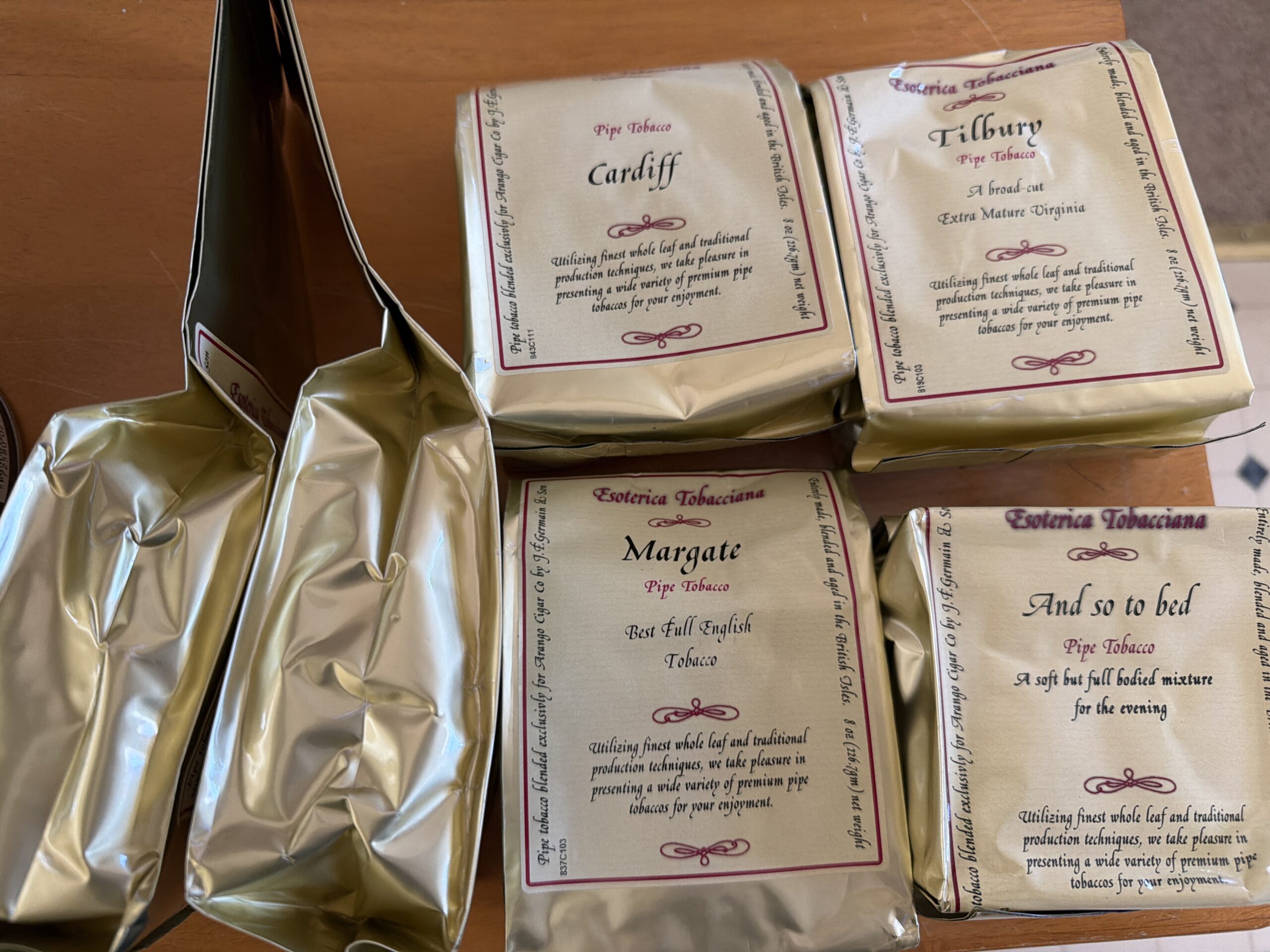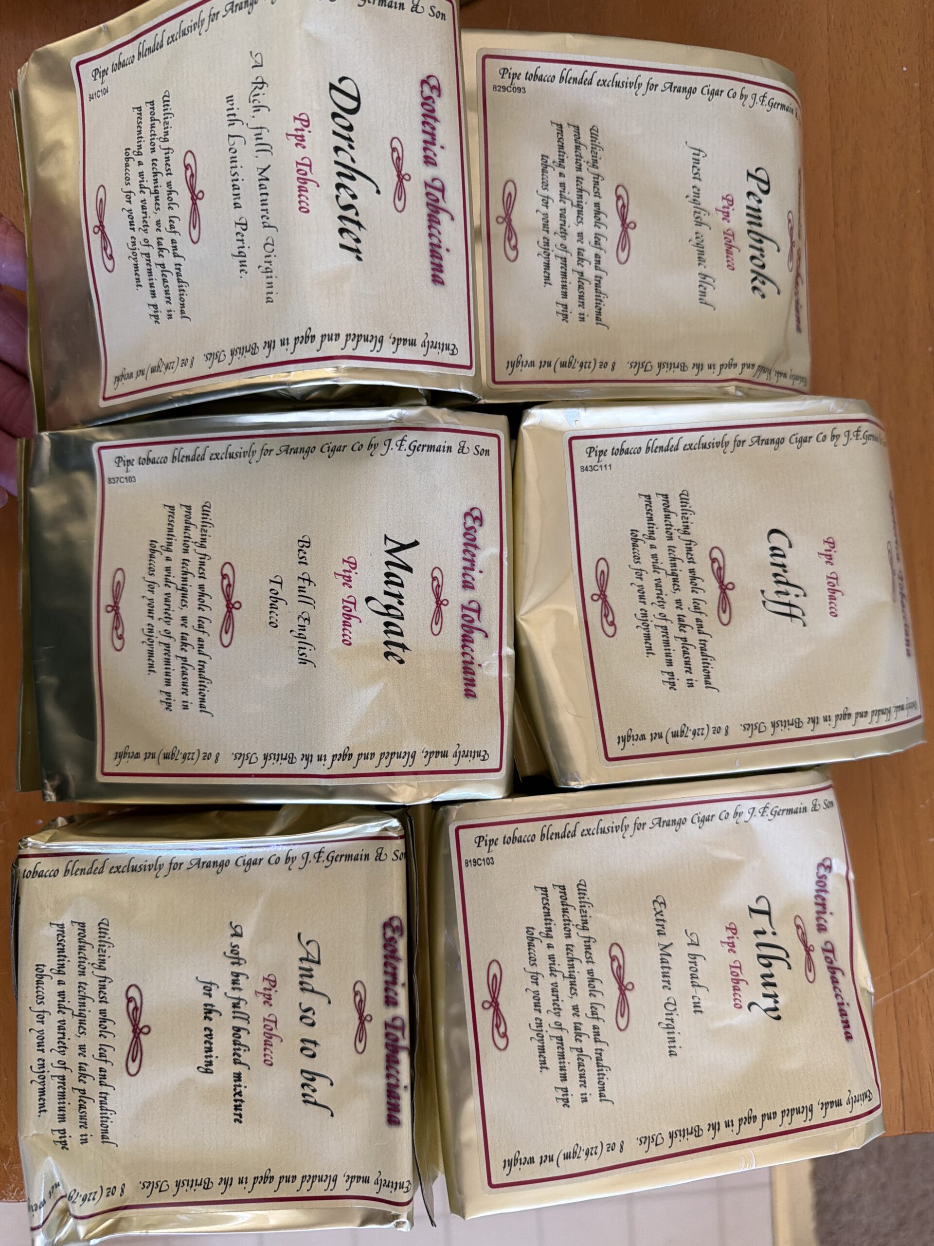 6 bags Esoterica Tobacciana Pembroke Cardiff Tilbury Dorchester Margate And so to bed