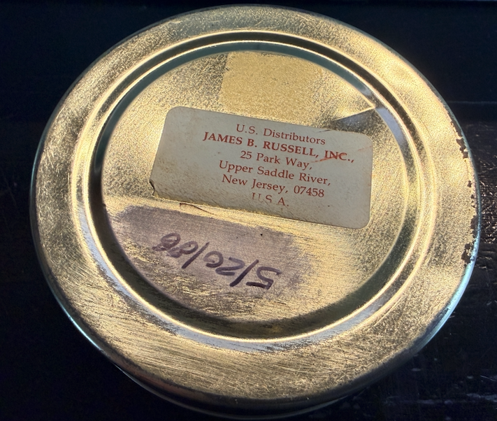 Rare. Full tin. Tin has shelf wear. Contents are undisturbed, but the seal is compromised. Will require rehydration.