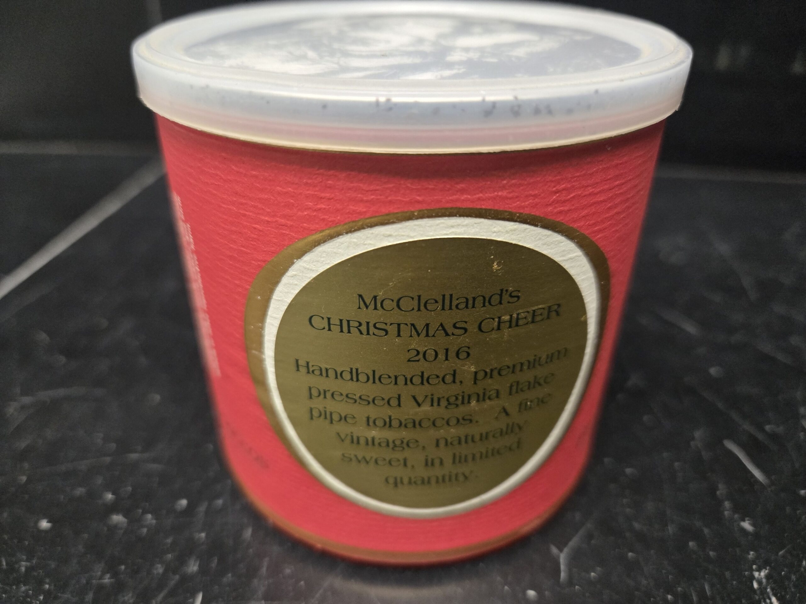One sealed 100g tin of McClelland Christmas Cheer pipe tobacco, dated July 2016.