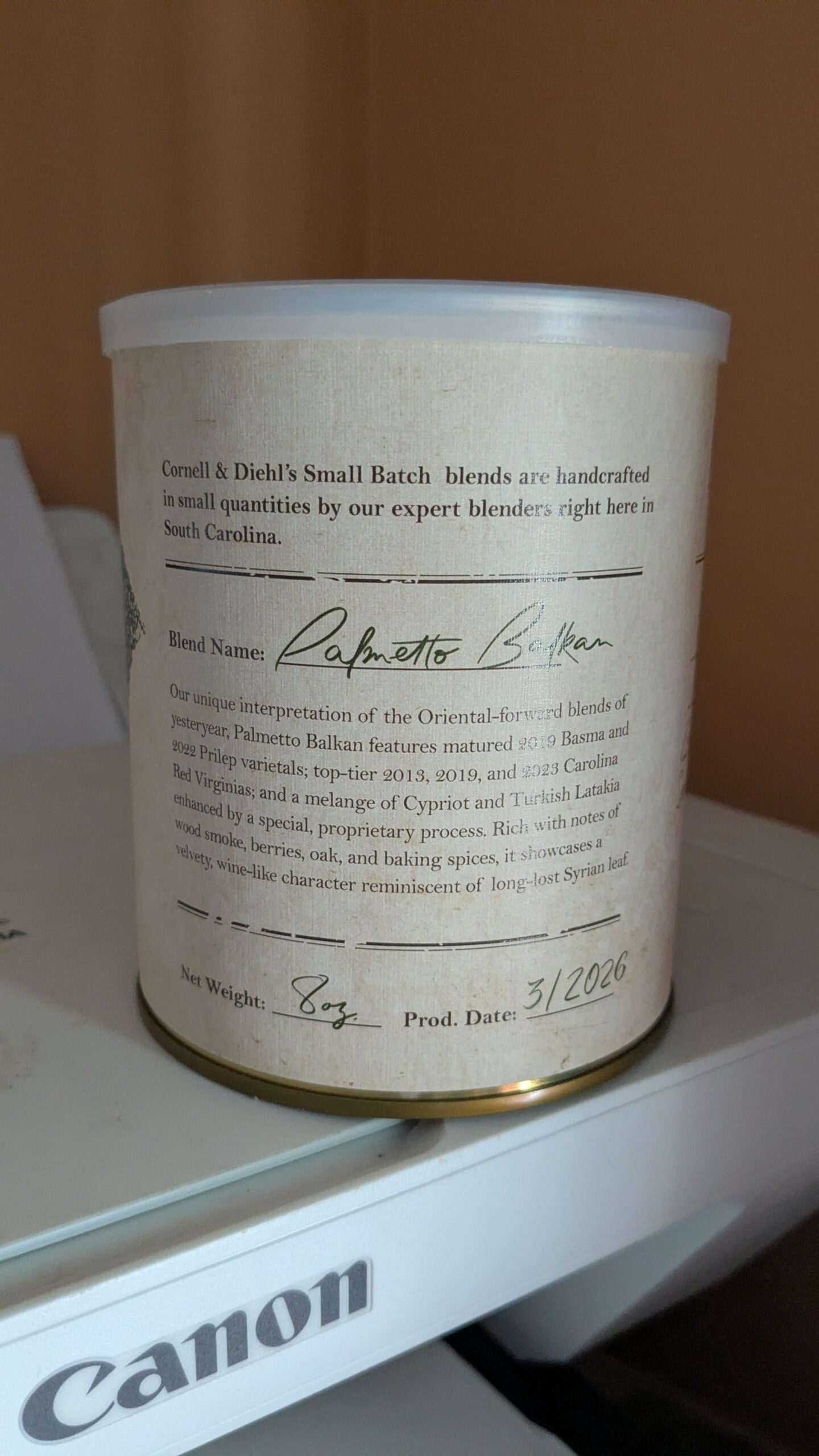 Cornell & Diehl Palmetto Balkan 2026 8 oz tin sealed