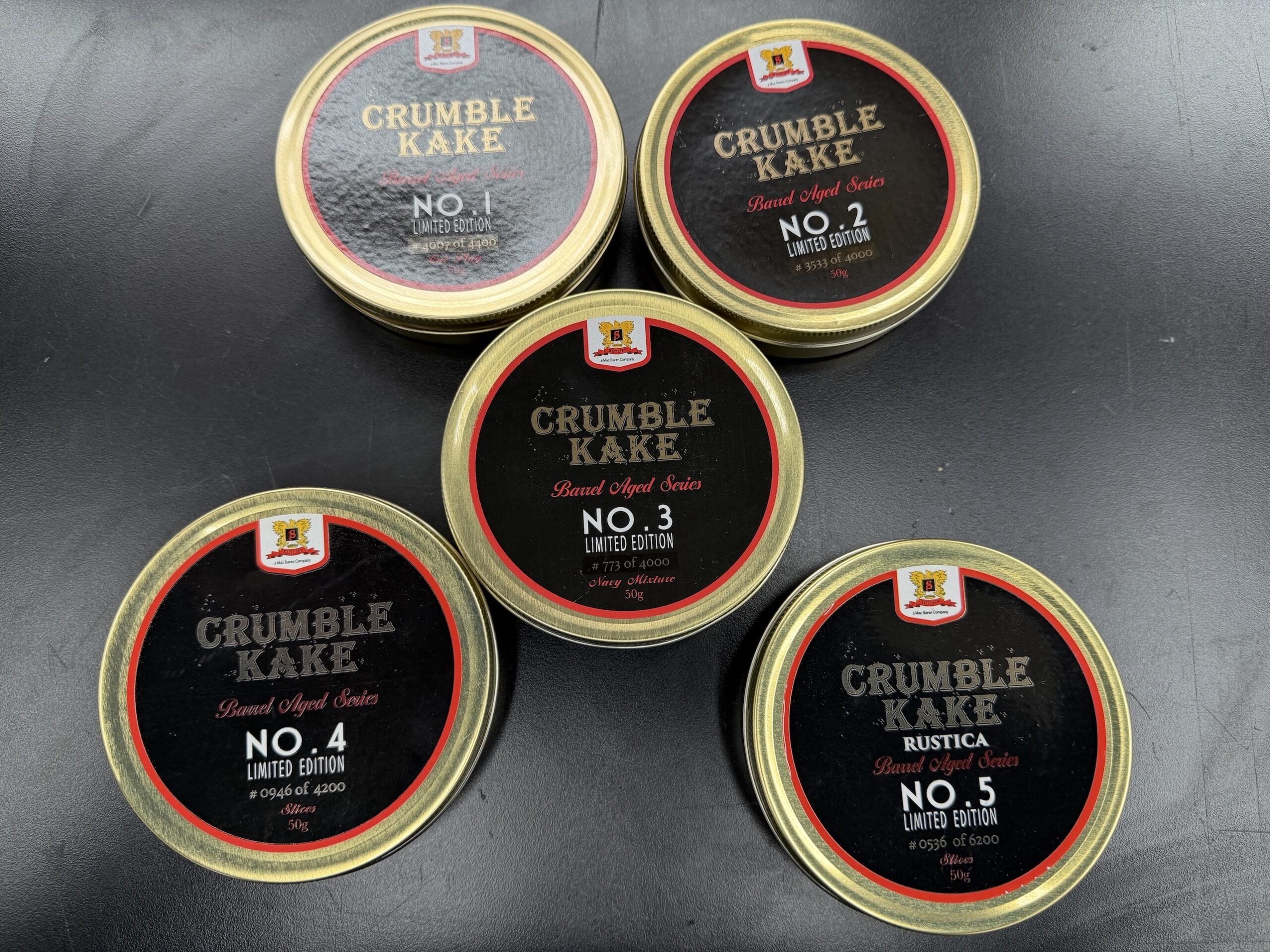5x Tins of Sutliff Limited Barrel Aged Series, No's 1 thru 5, All 2020-22