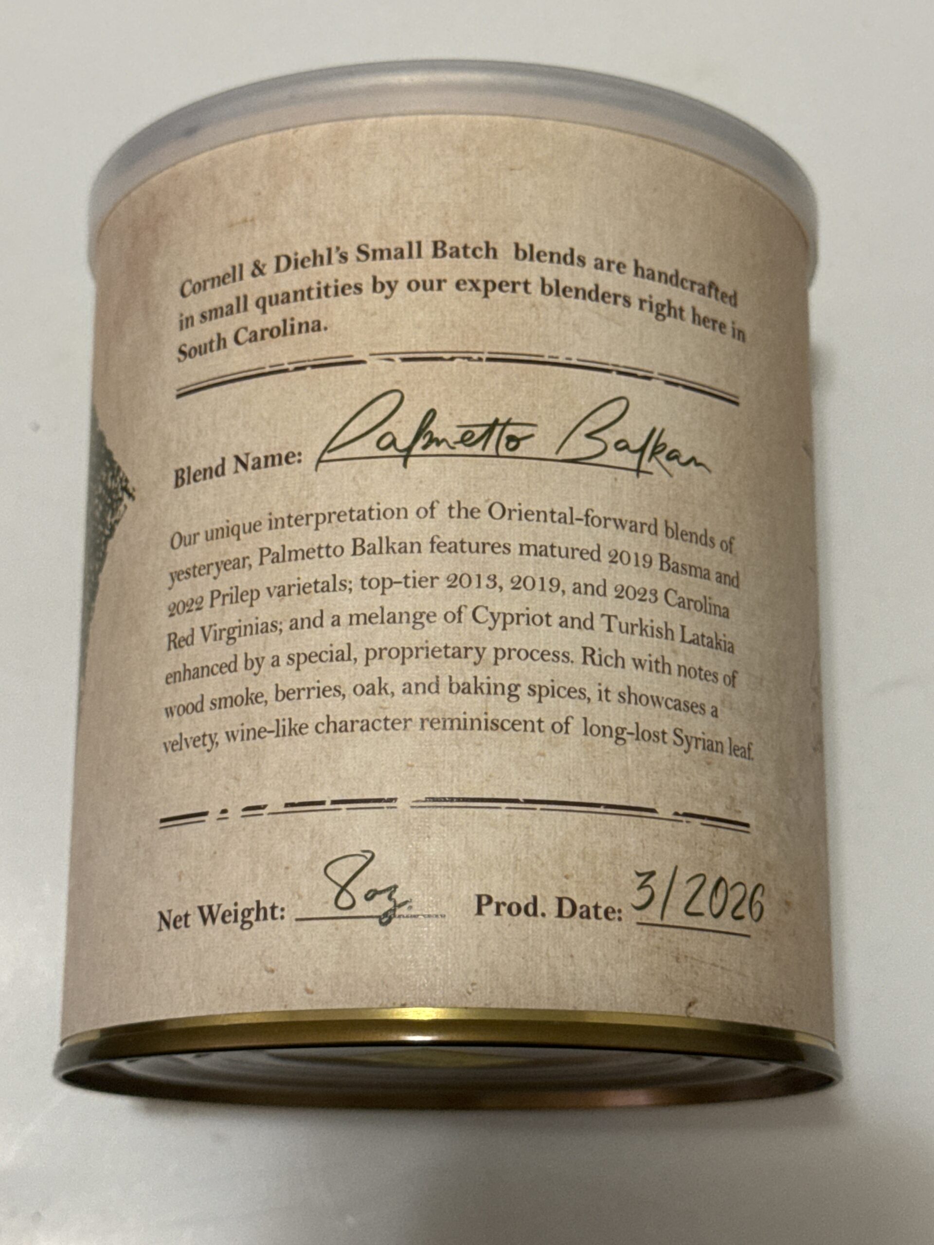 Cornell & Diehl Small Batch āPalmetto Balkanā Pipe Tobacco ā Limited Edition