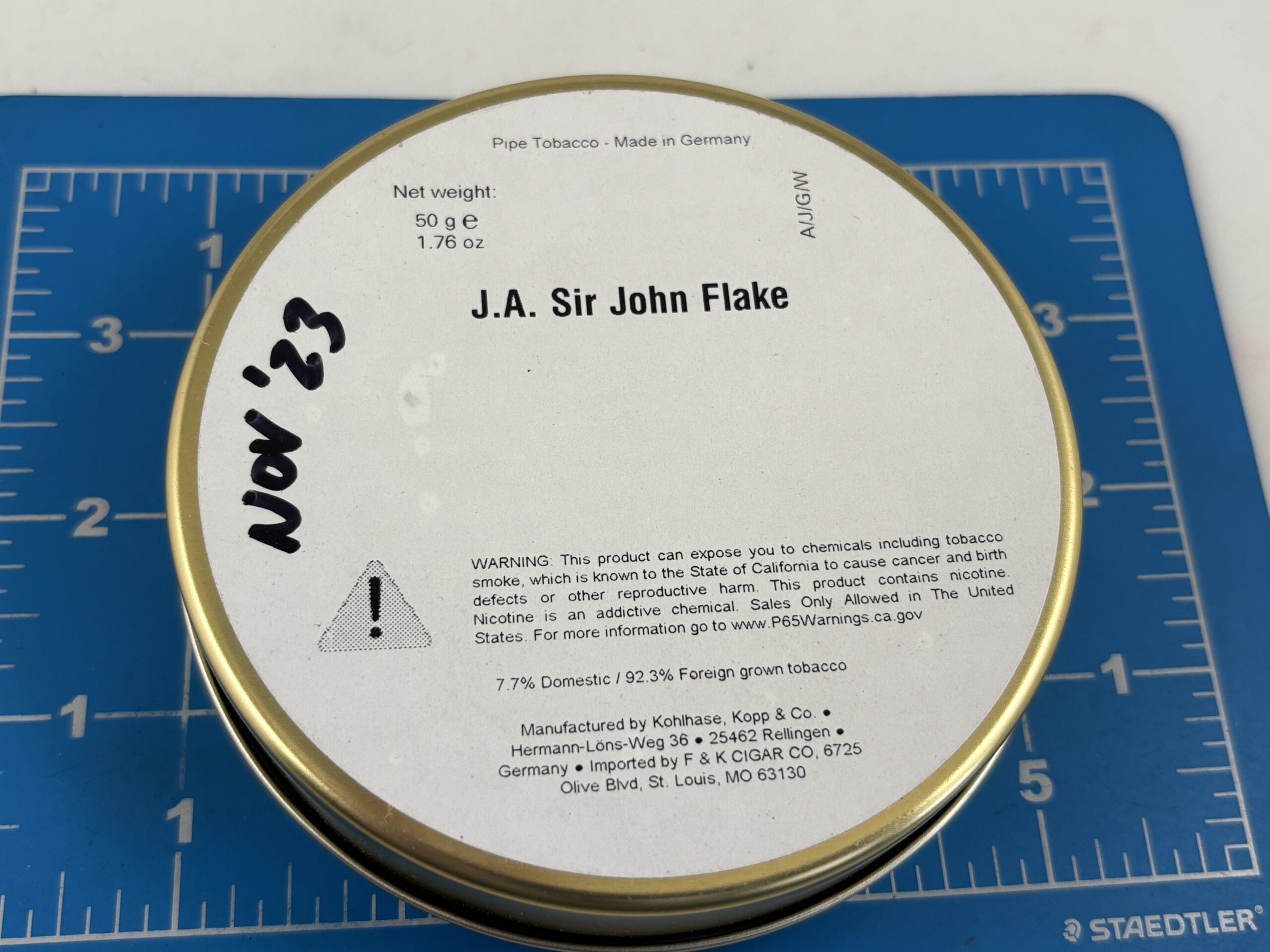 Very Nice Sealed 2023 John Aylesnury Sir John's Flake Virginia 1.75oz. Tin