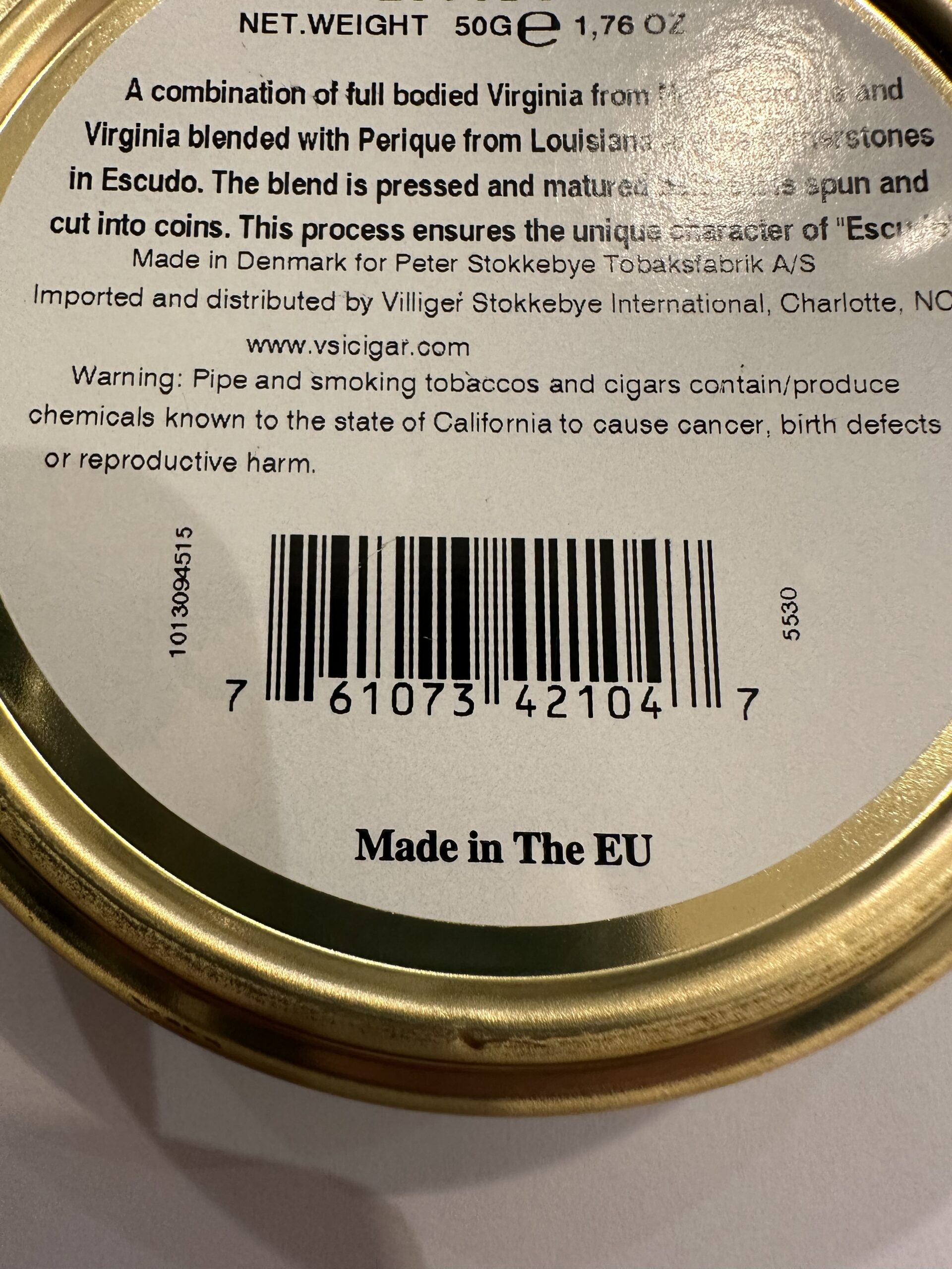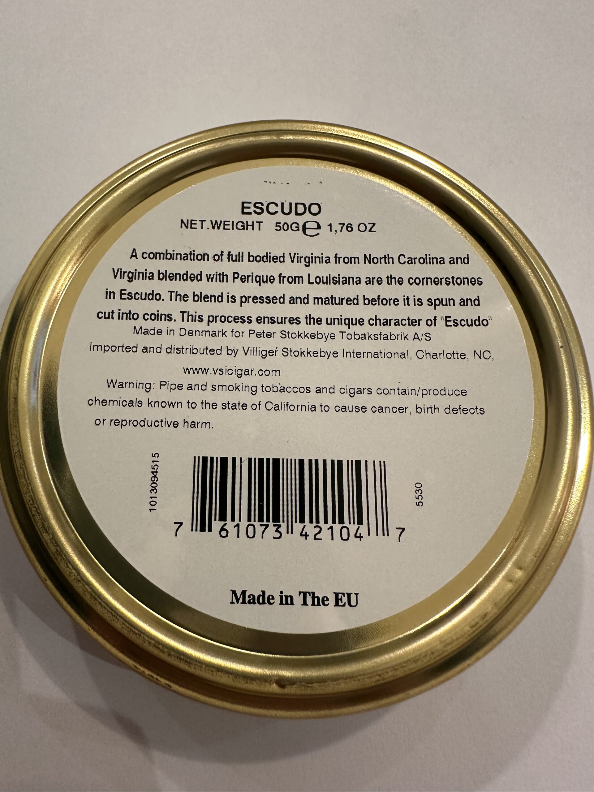 Escudo - Navy De Luxe 50g tin - STG - Made in Denmark for Peter Stokkebye