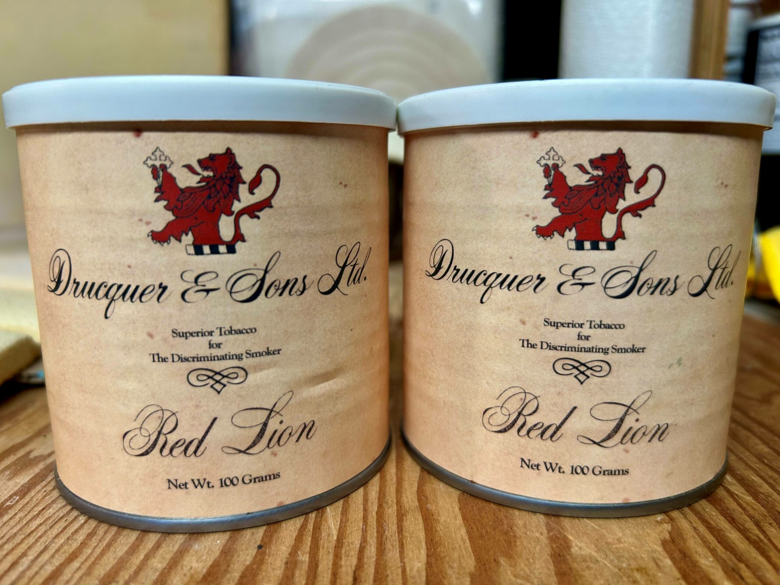 Two tins of Drucquer's RED LION, from the first tinning that Greg Pease created and that Cornell & Diehl blended back in 2016! 10 years of aging should bring this well rounded blend to mellow heaven! You'll be glad you did!