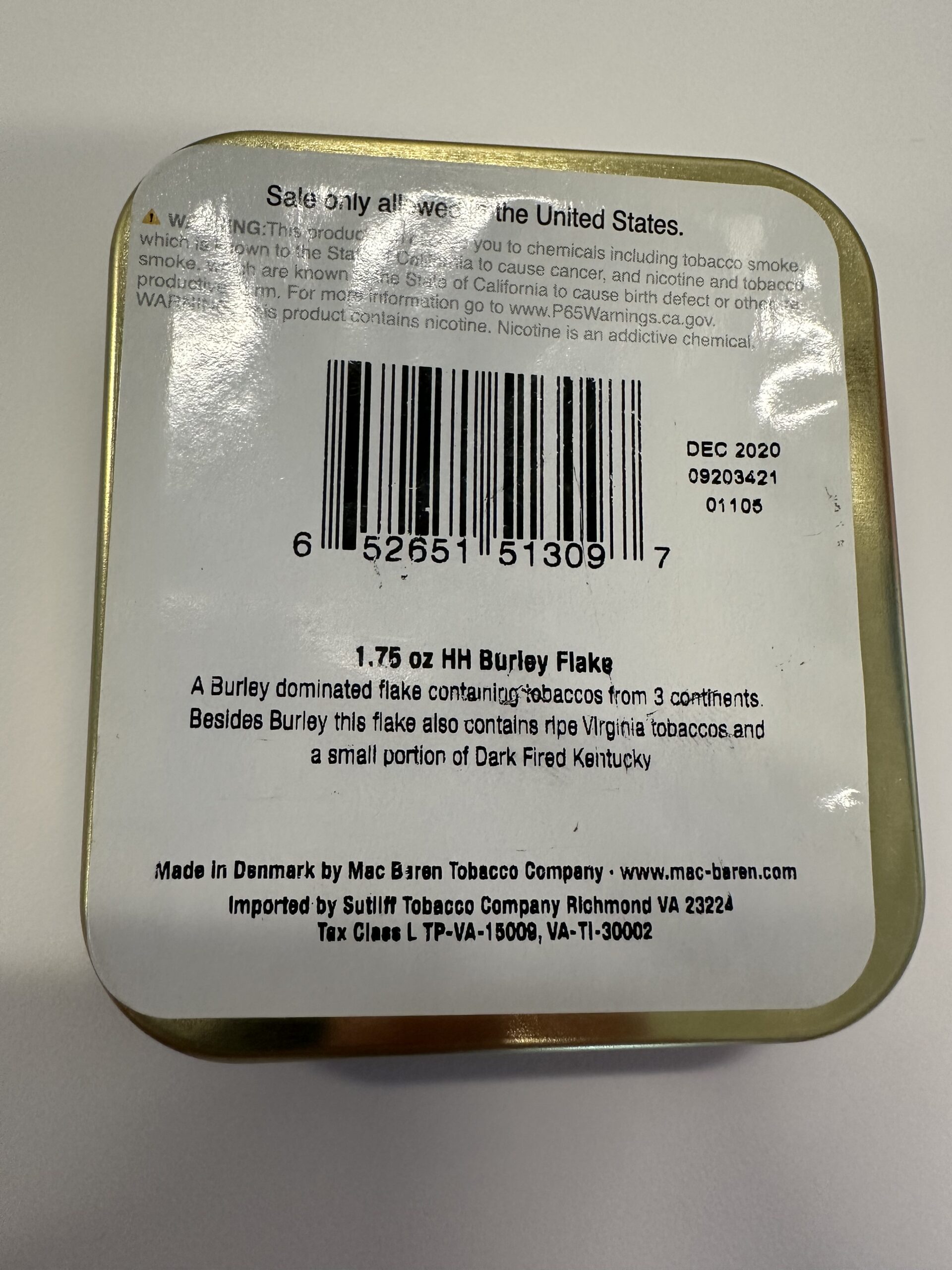 HH Burley Flake from Mac Baren (2020) 1.75g tin