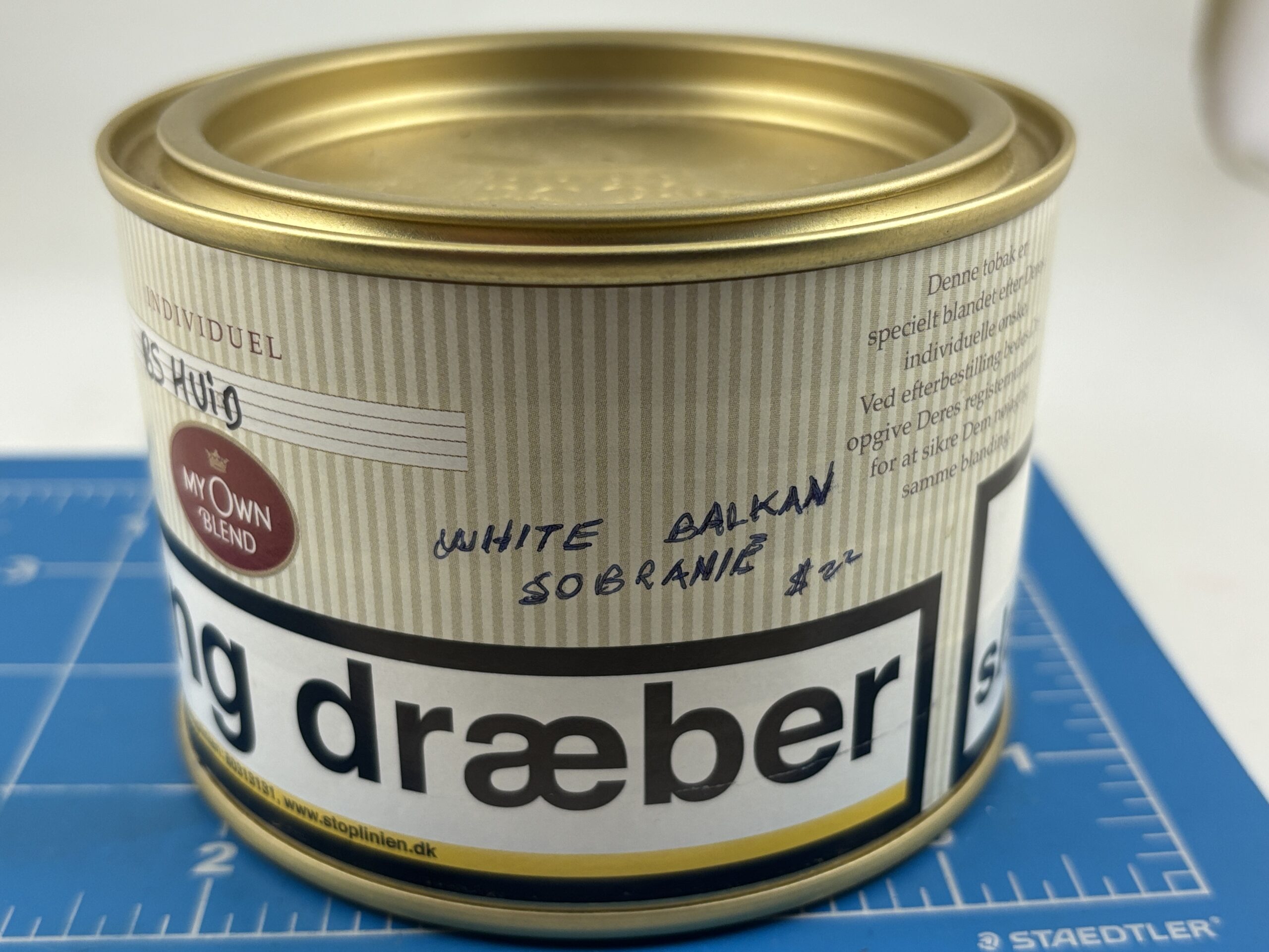 Excellent Sealed Paul Olsen My Own Blend White Balkan Sobranie 100g. Tin