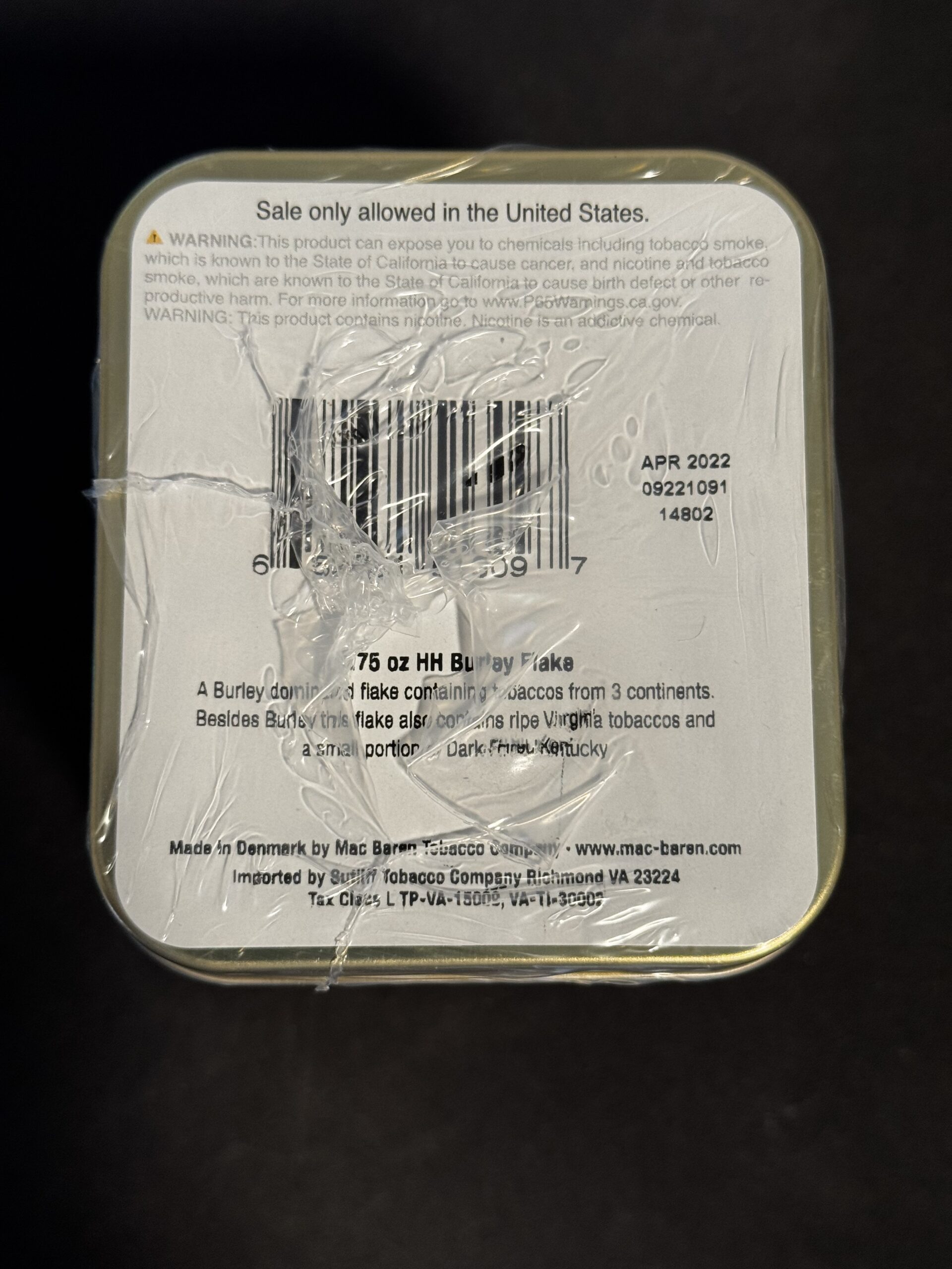 HH Mac Baren Burley Flake Sealed Sleeve of 5x 1.75oz Tins (Dated 2022) No Reserve