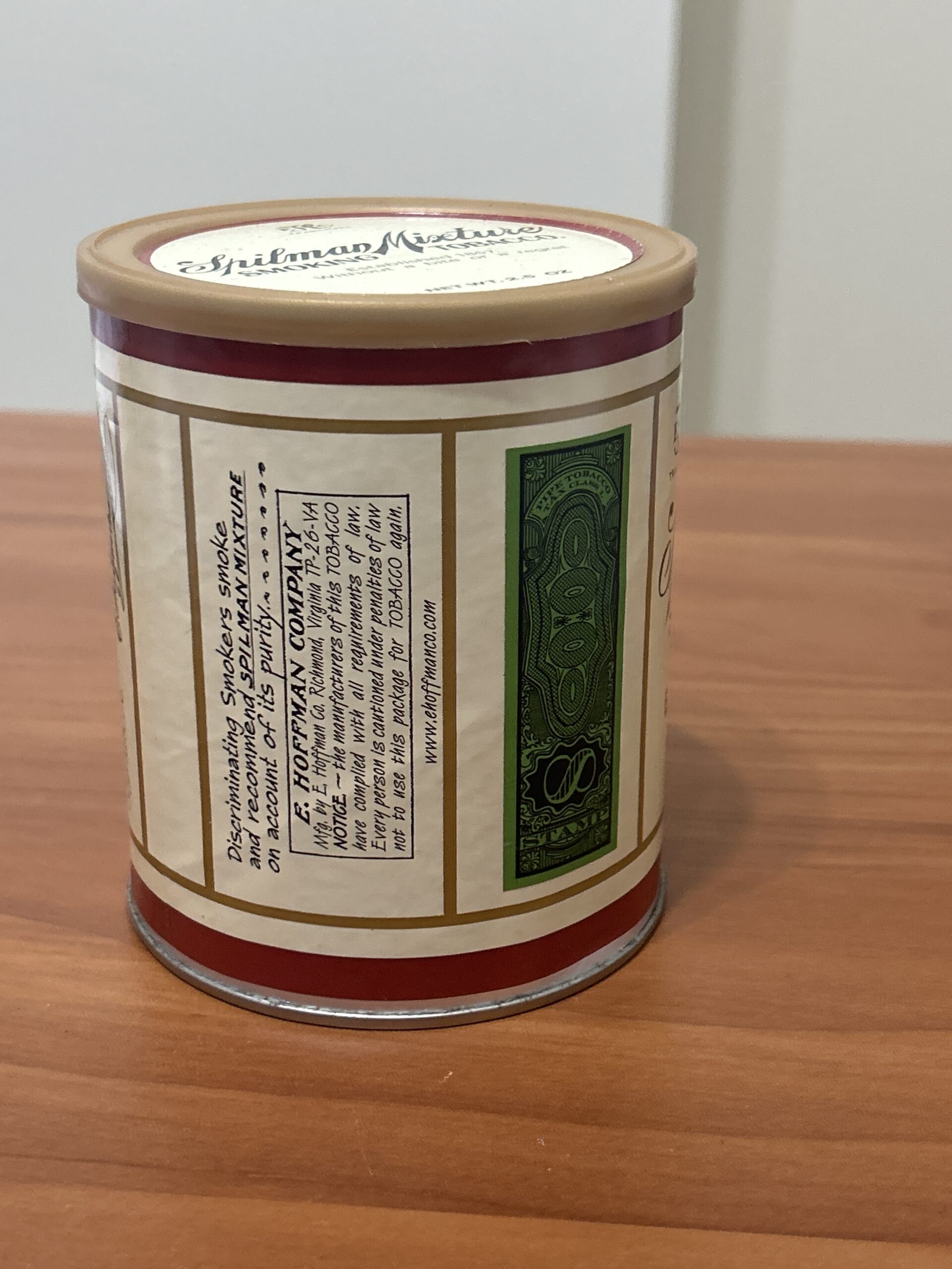 Spilman Mixture (aged from 2014), E. Hoffman Co, 7 oz sealed tin