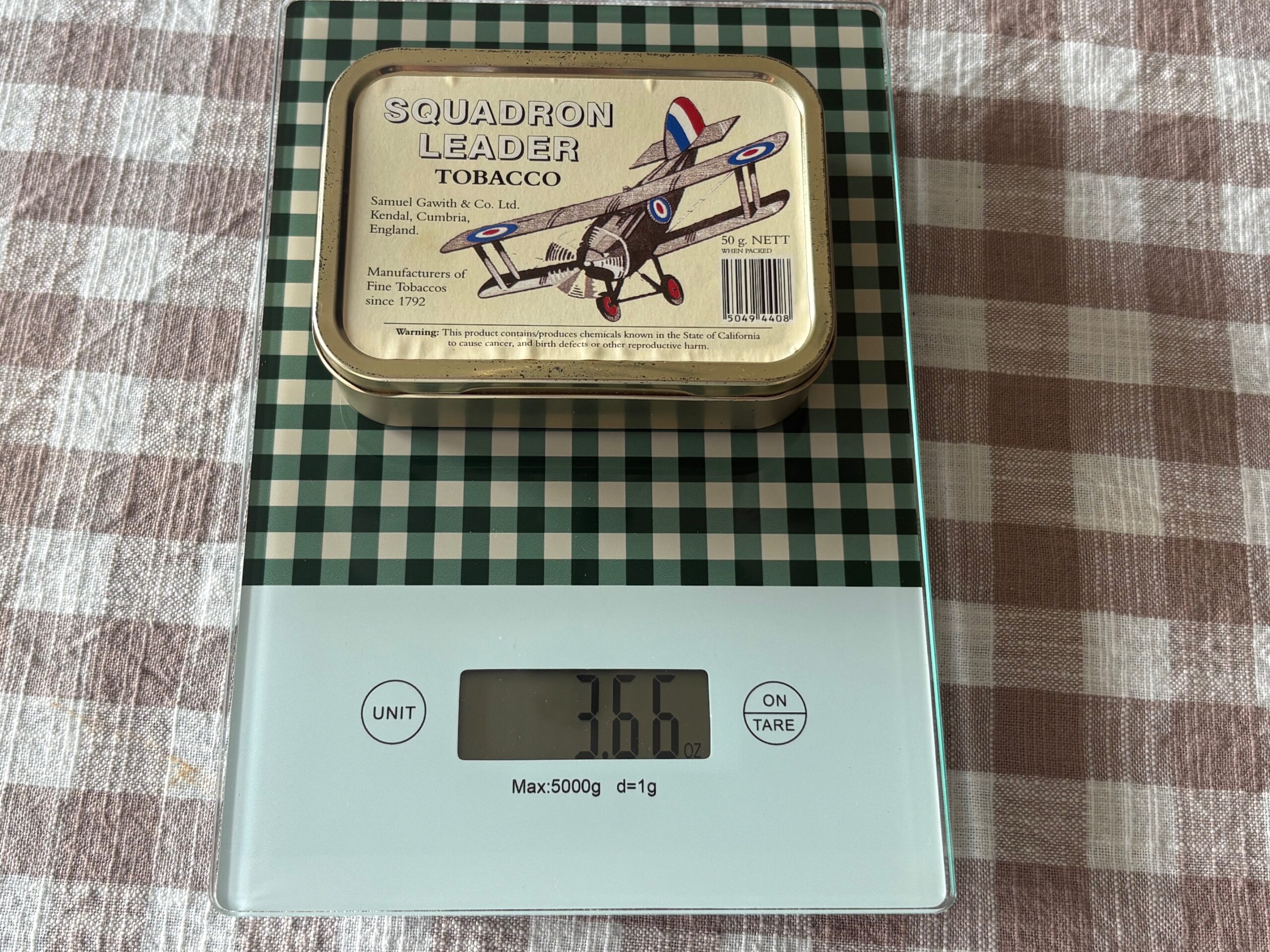 Open 50g tin of 2011 Samuel Gawith Squadron Leader unused/full tin. Tobacco is dry and will require rehydration.