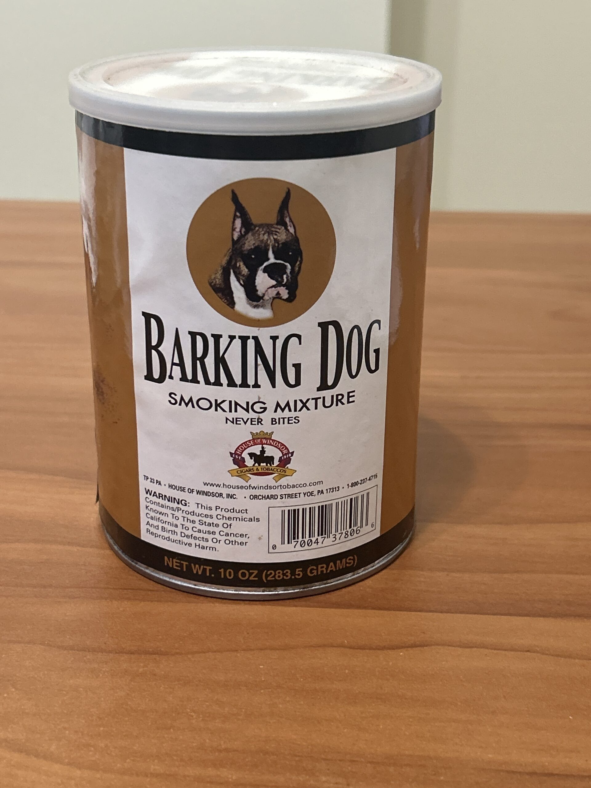 Barking Dog, House of Windsor, 10 oz sealed tin, it has some age on it and it’s well sealed. It’s been stored indoors in a temperature and humidity controlled environment . No reserve 5 day auction