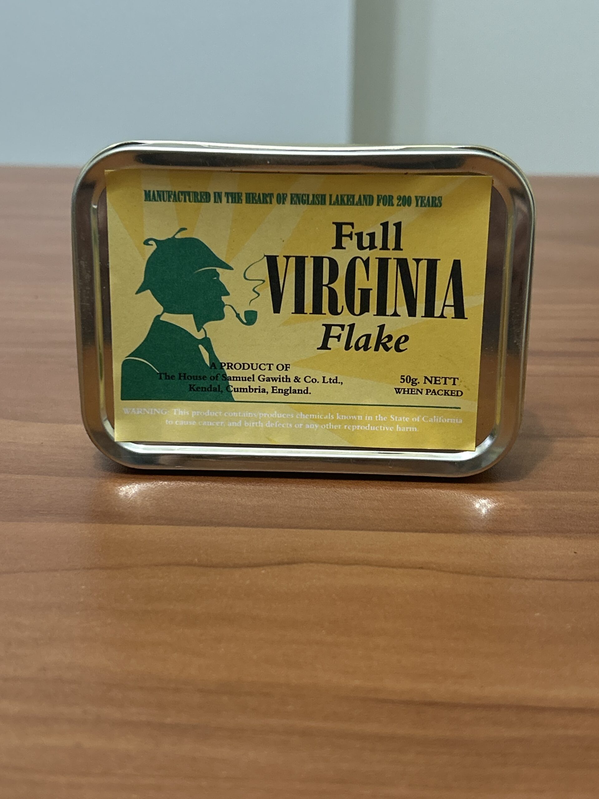 Samuel Gawith & Co, Full Virginia Flake, 50 gram sealed (gold metal) mid-2000s tin. Absolutely so rattling. Has been stored indoors in a temperature and humidity control environment. No reserve 10 day auction.