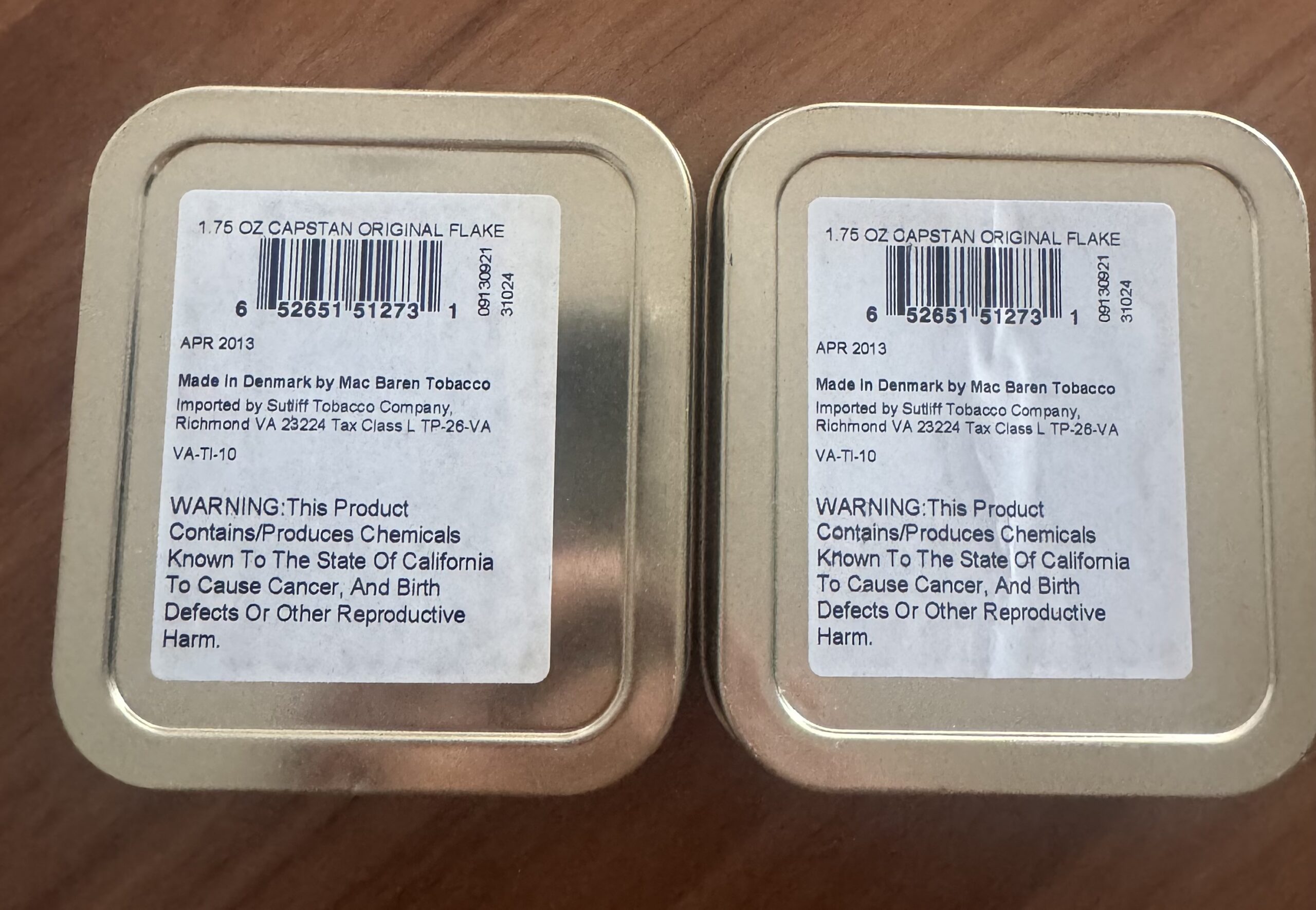 2-1.75oz Sealed Capstan original navy cut Flake tobacco.
