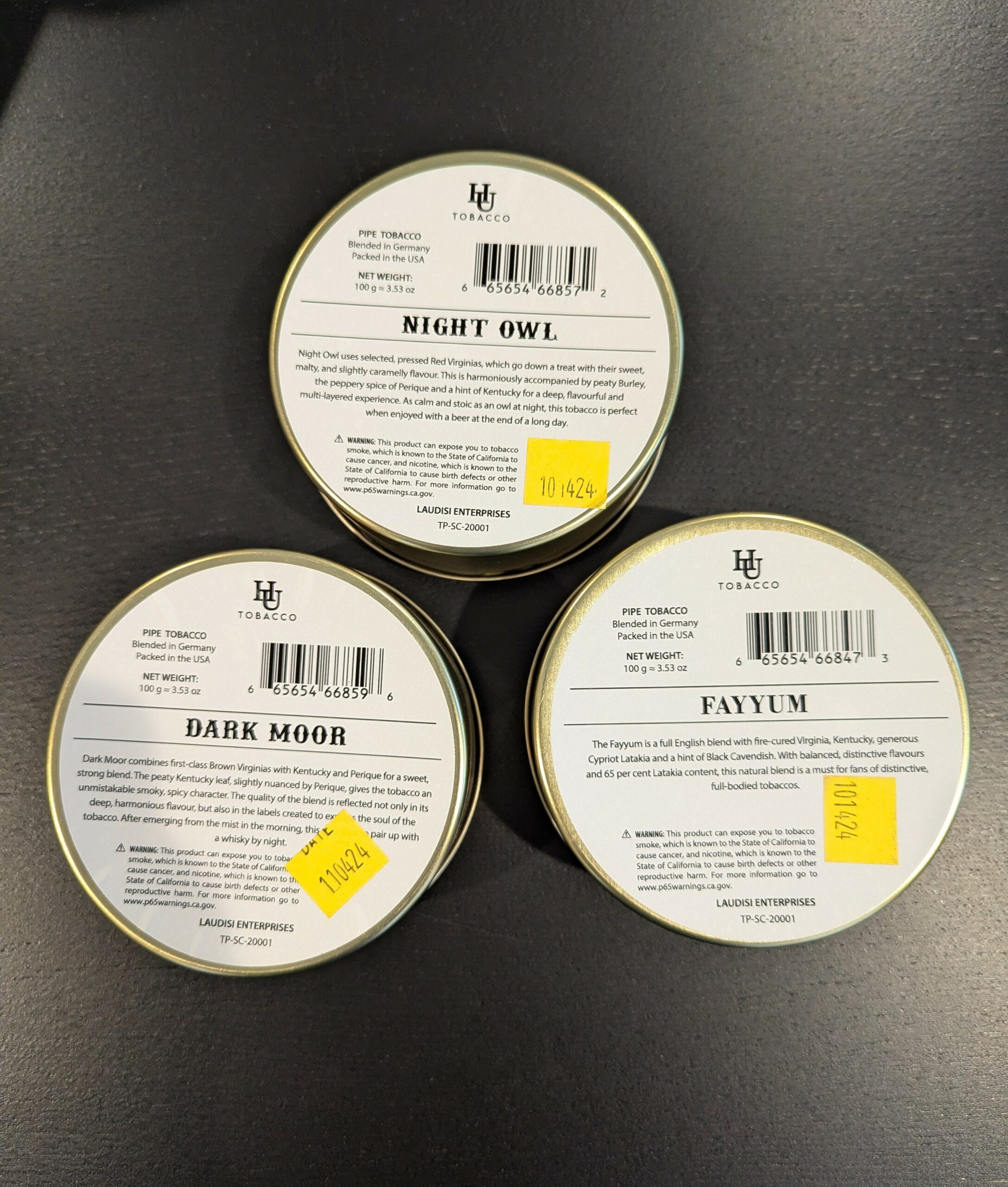 3 sealed 3.5 oz tins of HU Tobacco from 2024