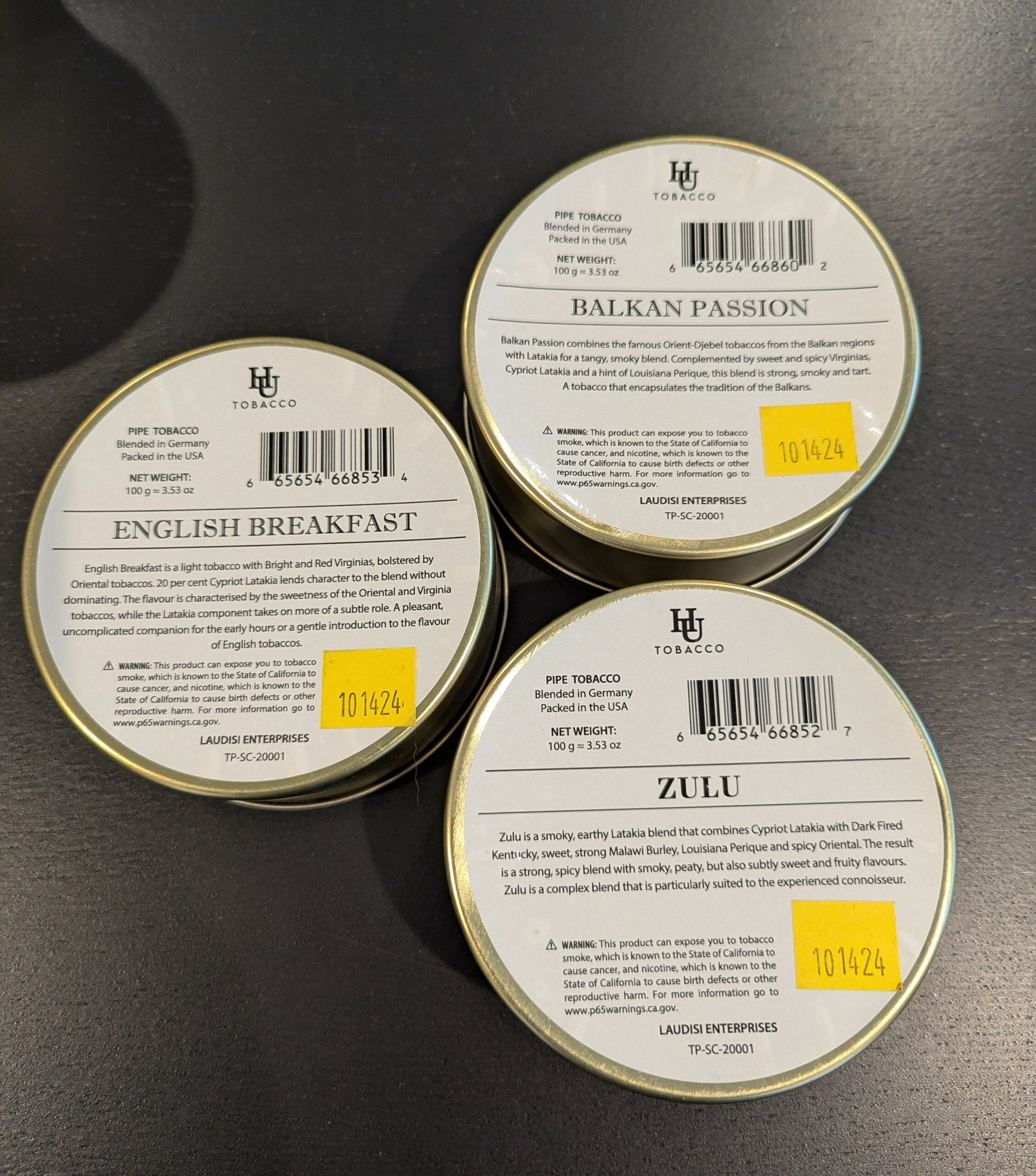 3 sealed 3.5oz tins of hu tobacco from 2024
