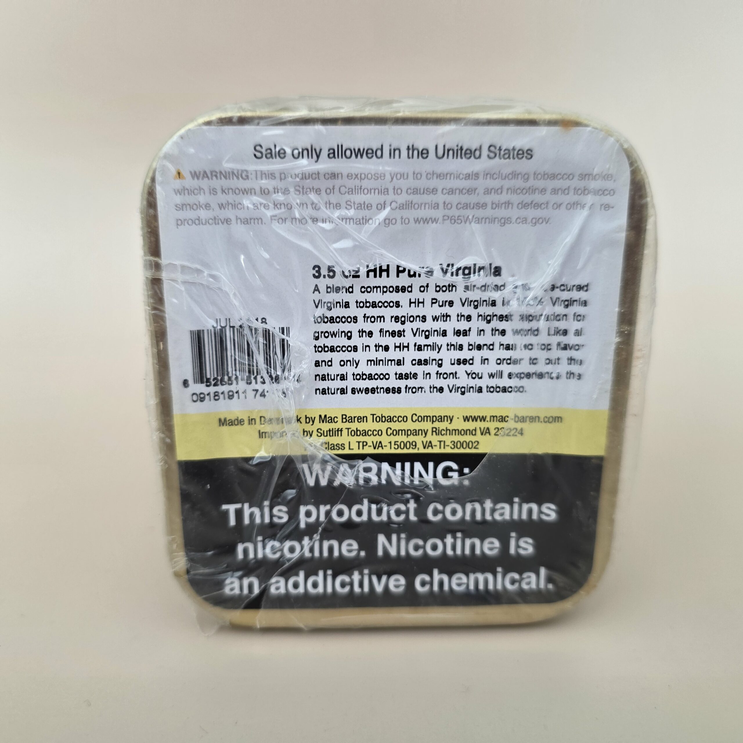 2018 HH Pure Virginia from Mac Baren - 3pack 3.5oz ea