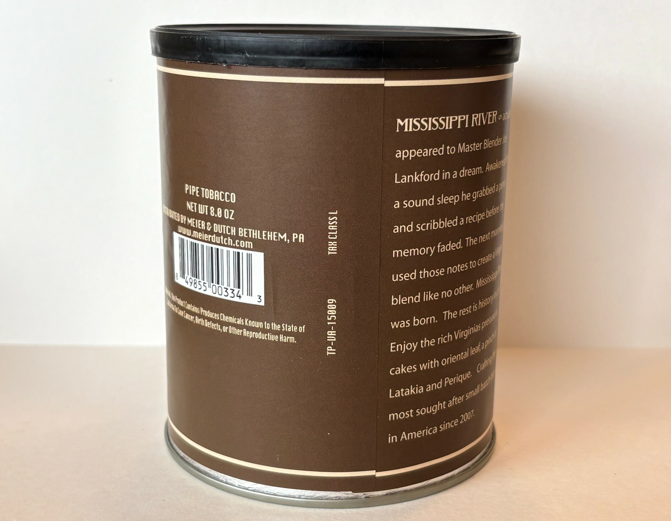 Unopened 8 ounce tin of 2017 Seattle Pipe Club Mississippi River.