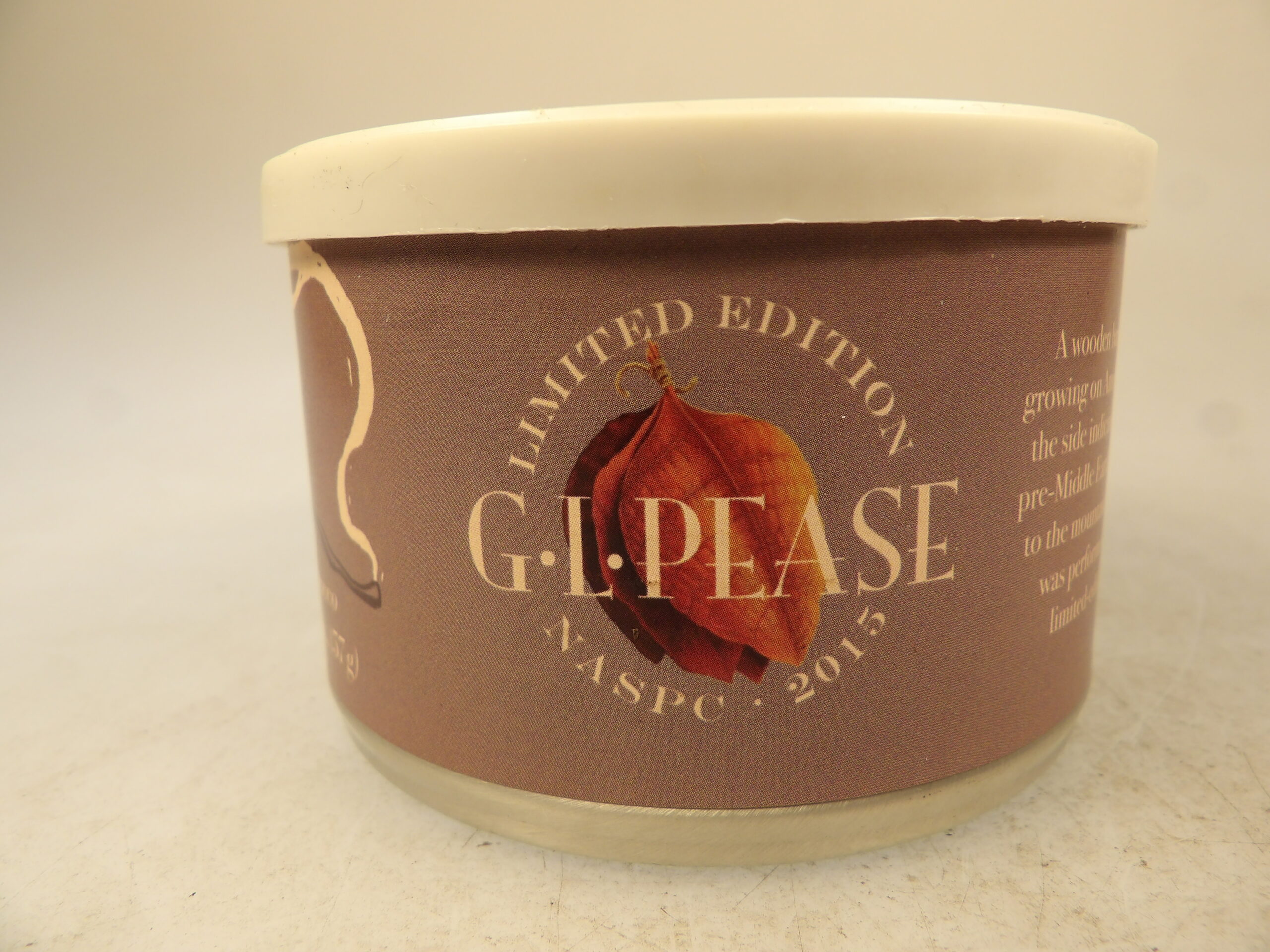 DESCRIPTION: Here is an auction for sale. It is a Vintage Collectible 10 Years Old G.L. Pease NASPC Elf Weed 2 oz’s Pipe Tobacco Tin Annual 2015 Show. This tin is sealed and has never been opened. NASPC 2015 show blend: A wooden barrel was spotted inside the tall grass growing on Amelia Island, Florida. Elvish markings on the side indicated it contained a rare pipe-weed from pre-Middle Earth. The barrel was carefully transported to the mountaintop lair of G.L. Pease where wizardry was performed to transform its contents into 150 limited edition tins for the NASPC 2015 Show. Typical of Pease blends, this one will shine brightly day or night and very bite less a top shelf Virginia all the way, analysis reveals to contain rare pipe weed (Latakia, Orientals and Virginias from middle earth) in remarkable condition. Good Luck Bidding and Thanks for Stopping by.