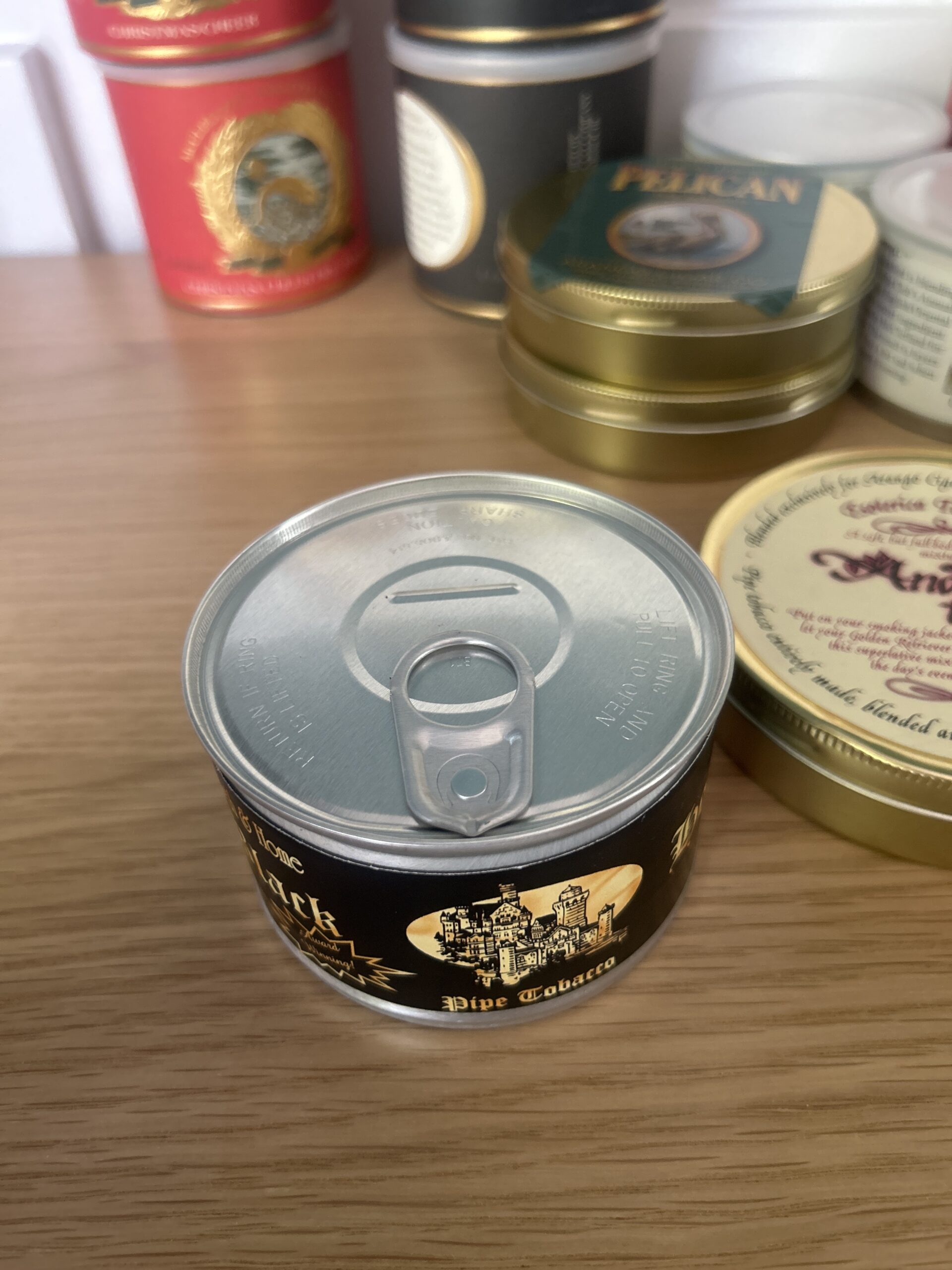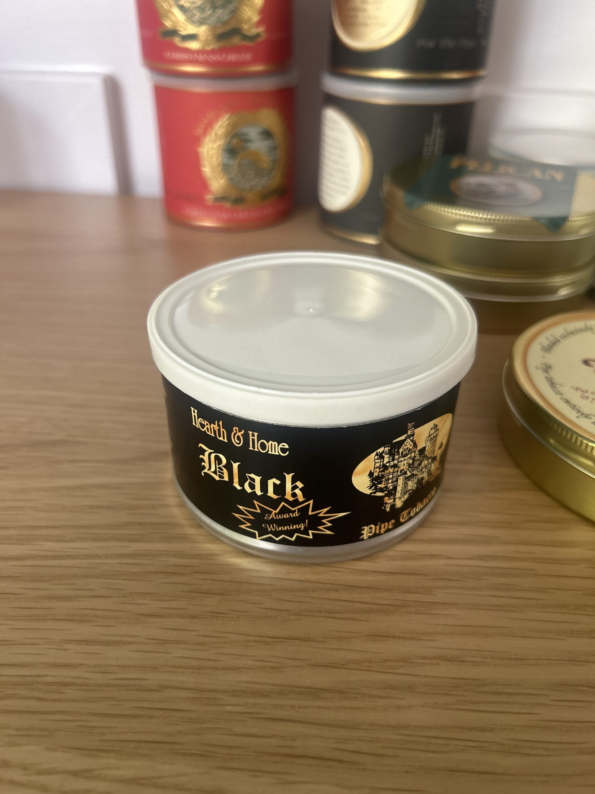A sealed 2011 tin of Hearth and Home’s Black house. A beautiful blend intended to clone the famous Balkan Sobranie 759 blend.